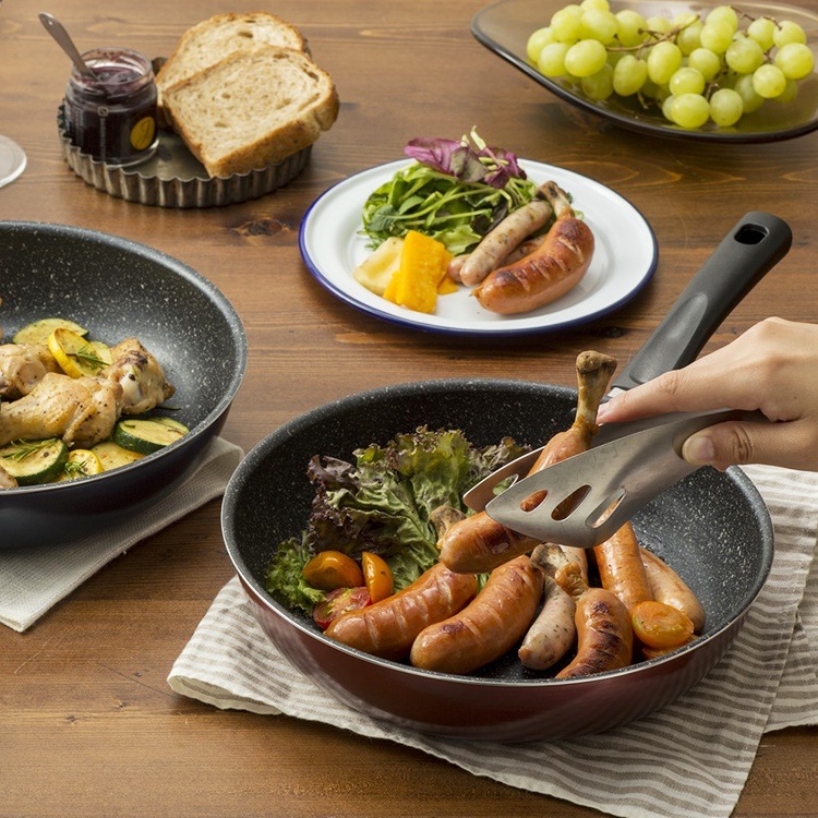 | 軽くて使いやすいフッ素コーティングフライパン。 焦げ付きにくくて、こびりつきにくいので、余分な油を使わずヘルシー料理に! 目玉焼きなどもこびりつかずするりと盛れます。 さらに、フライパンが軽いので毎日のお料理も簡単に! 手軽にサッと使えるフライパン。 お手入れも簡単。 調理後も中性洗剤を付けたスポンジ等で優しく洗うだけでサッときれいに。 ●商品サイズ(cm) 直径約26×高さ約5.8 ●底の厚さ 約3mm(はり底含む) ●満水容量 約2.5L ●表面加工 内側/フッ素コーティング 外側/焼付塗装加工 はり底/ステンレス鋼 ●材質 本体/アルミニウム合金 ハンドル/フェノール樹脂(耐熱温度150℃) ●ガス・IH対応 |