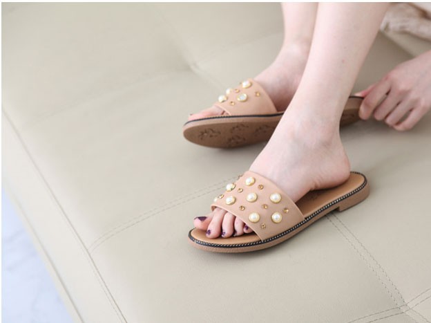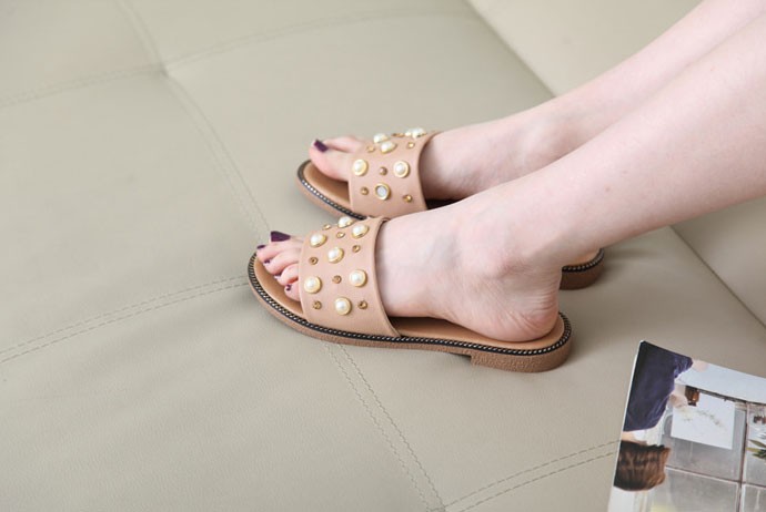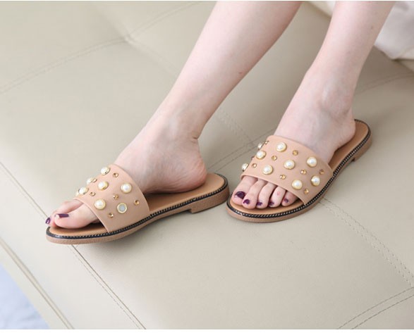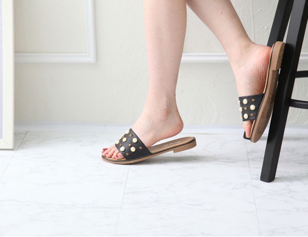 商品名:サンダル レディース ペタンコ フラットヒール ビジュー 2018 春 ファッション 靴 婦人靴
