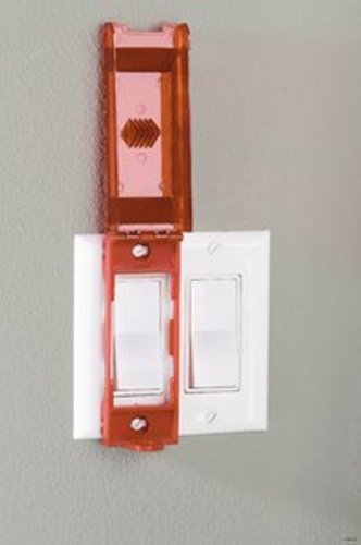 - Feature : Covers both toggle and rocker wall switches and combines with a padlock (sold separately) to help protect against switch operation during maintenance and repair / Hinged cover can be left open when not in use to allow normal switch operation / Red polycarbonate for visibility and impact resistance / Installs over switch plate using existing screws / Includes two "DANGER" labels, one Spanish and English, and one French and English