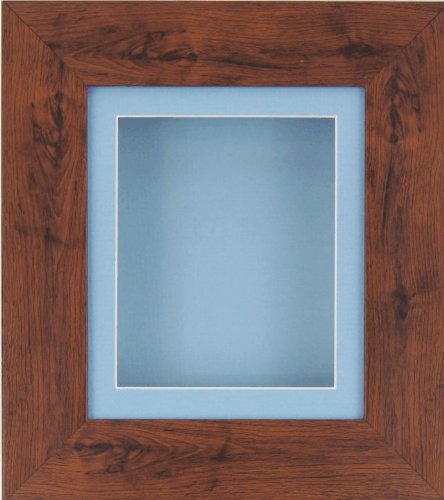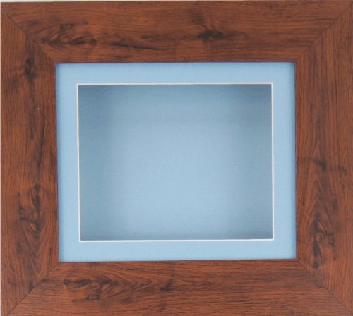 -. Title : BabyRice Deep Box Display Frame for 2D 3D Art Objects Medal Keepsake Baby Casts 1st Bootees Flowers Mahogany effect / Blue Mount / Blue backing