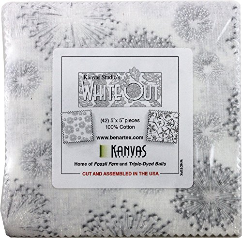 Kanvas Studio White Out 5X5 Pack 42 5-inch Squares Charm Pack Benartex