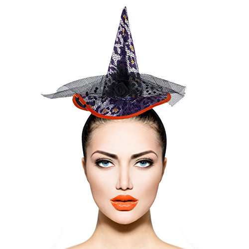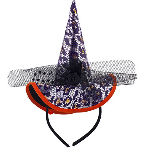 Lux Accessories Black Headband Cheetah Print Black Witch Hat Halloween Costume