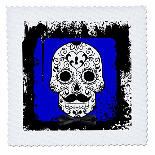 3D Rose Day of the Dead Mustache Bow Tie Unique Design Quilt Square 14 by 14 Inch, 14 x 14"