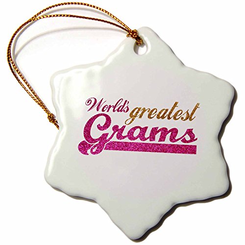 3dRose orn_151303_1 Worlds Greatest Grams-Best Grandmother in The World-Grandma Gifts-Pink Gold Text-Snowflake Ornament, 3-Inch, Porcelain