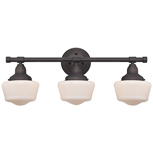 Westinghouse 6342100 Scholar Three-Light Indoor Wall Fixture, Oil Rubbed Bronze Finish with White Opal Glass