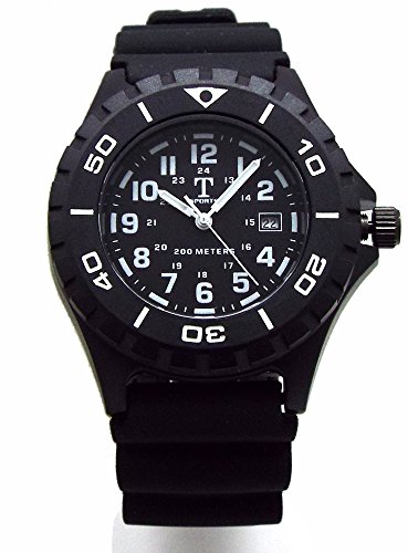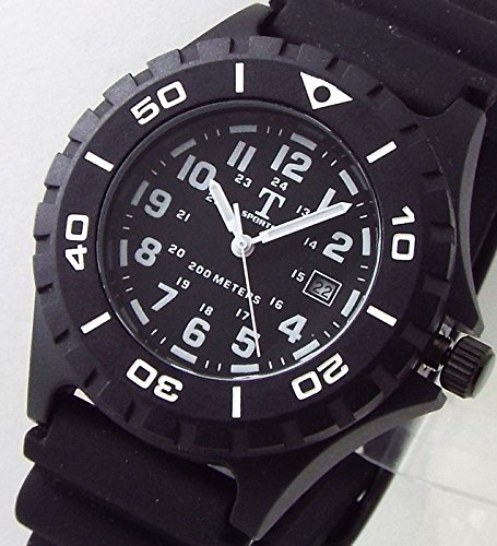 Tsports 200m 맨즈 다이버스 워치 회전 베젤 러버 벨트 데이트 부착 블랙/화이트 TSA023--WH [병행수입품]