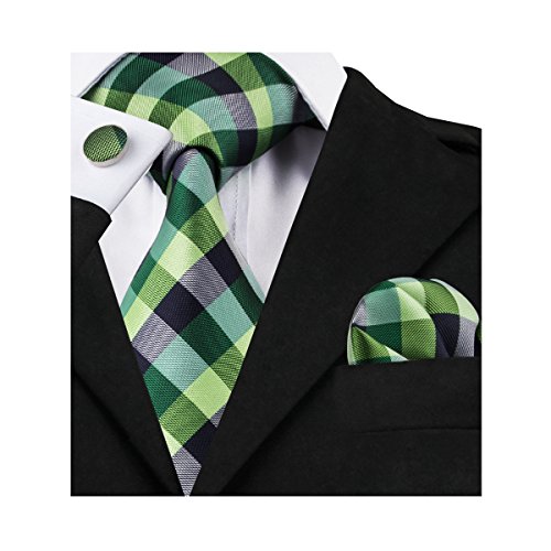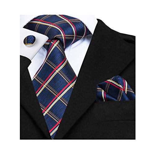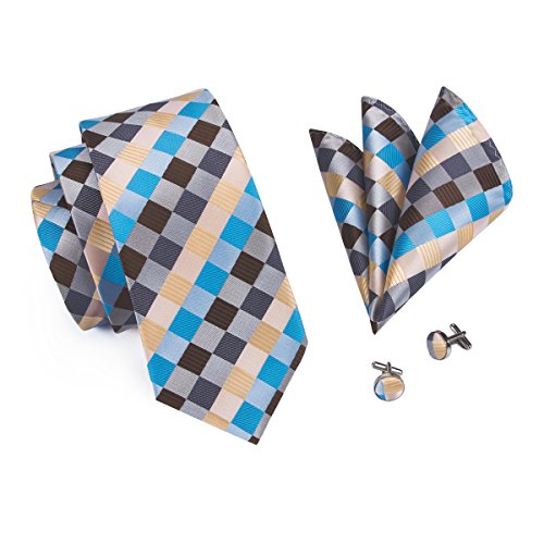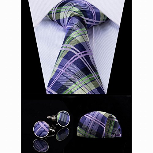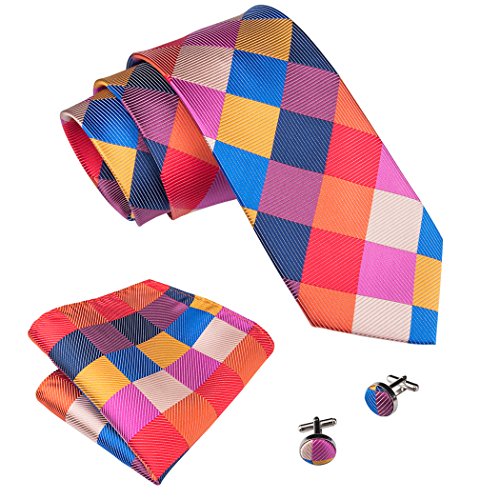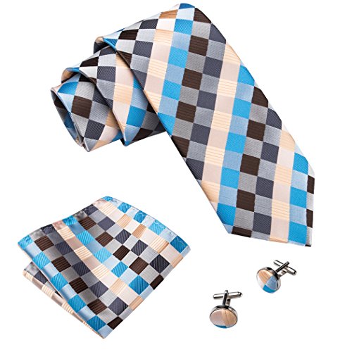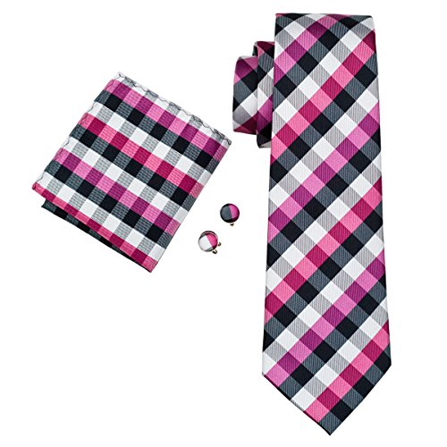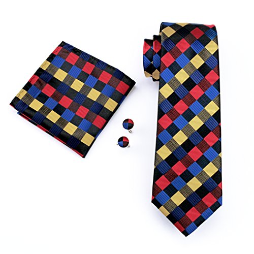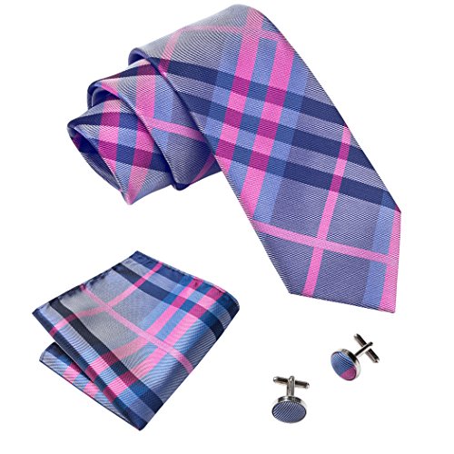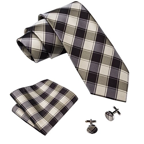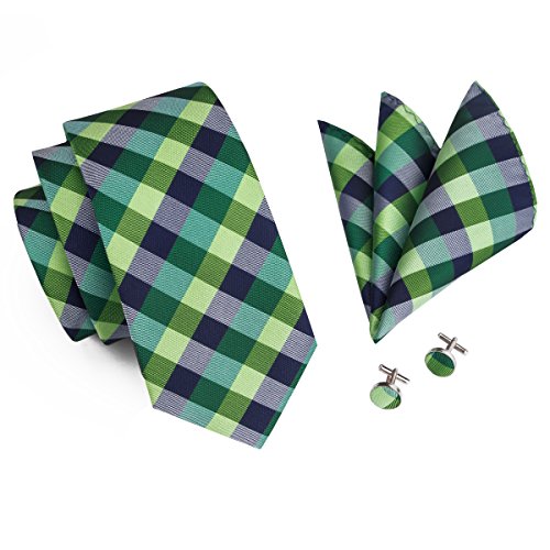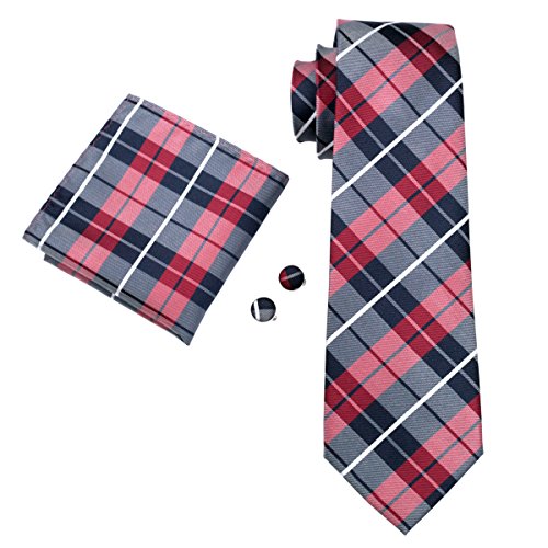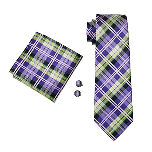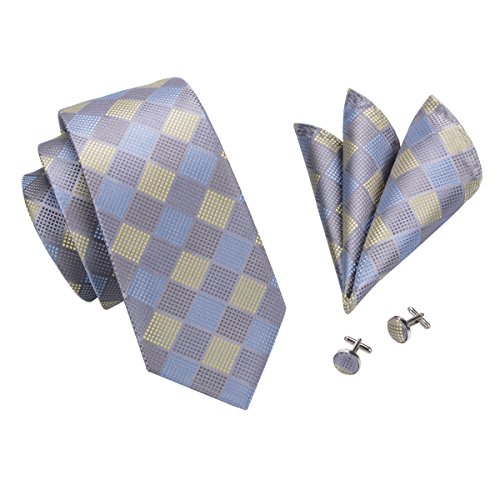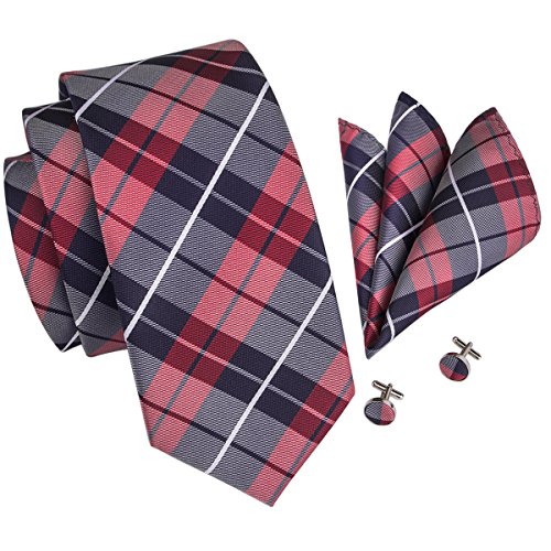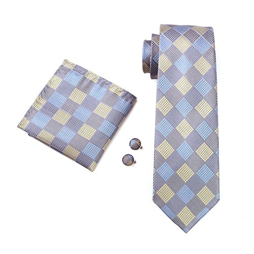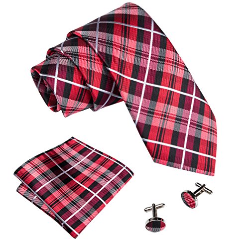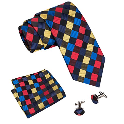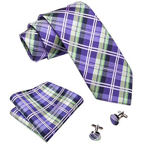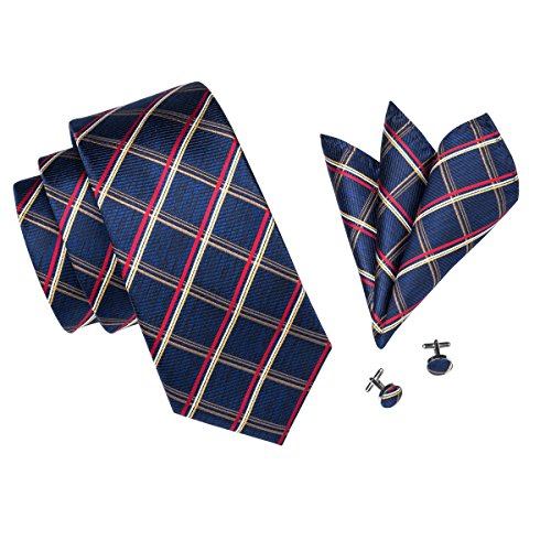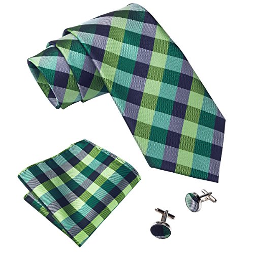 | Barry.Wang Mens Classic Plaid Necktie Set include Hanky Cufflink |