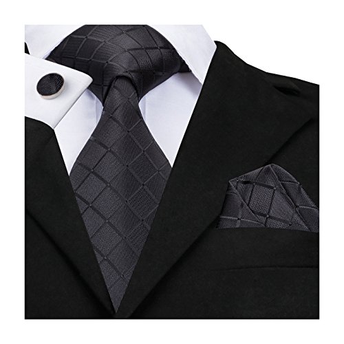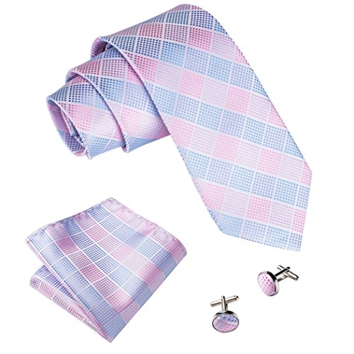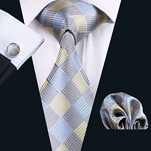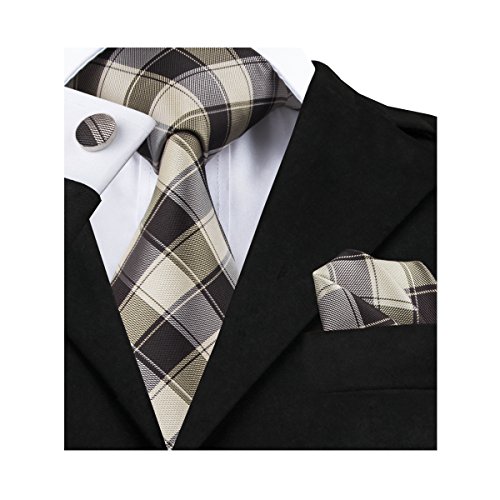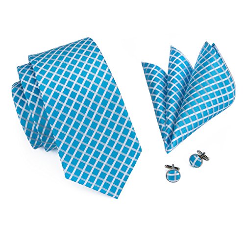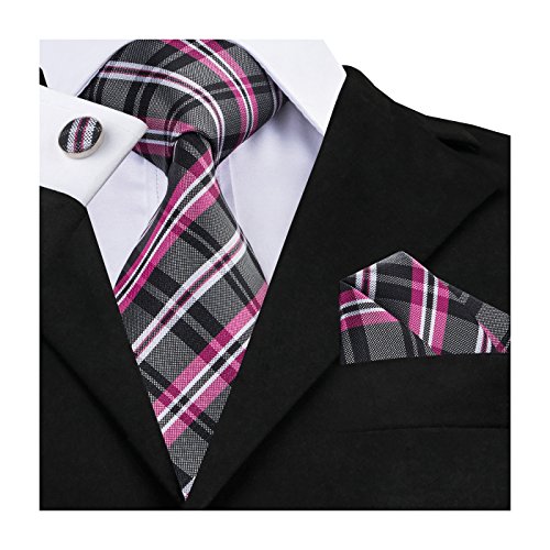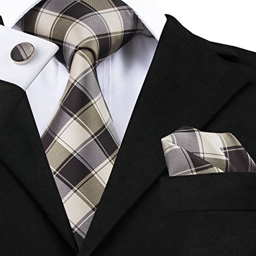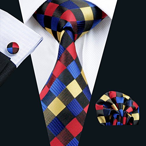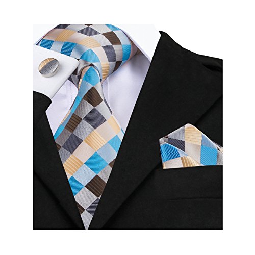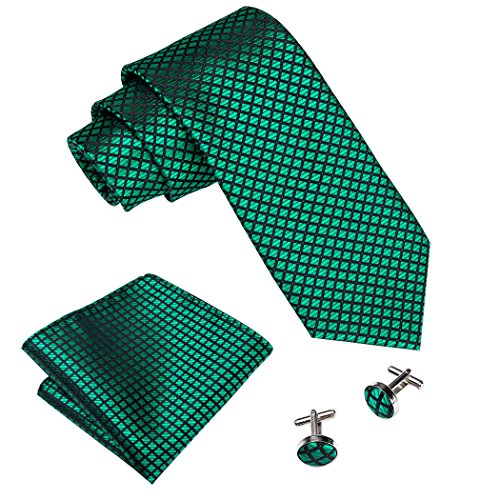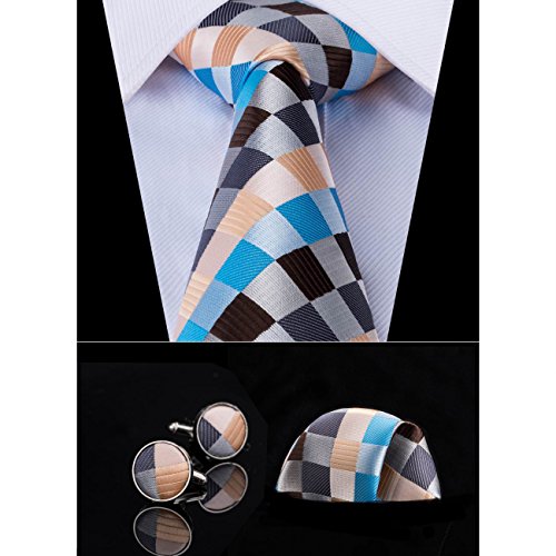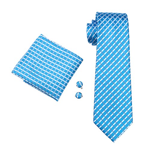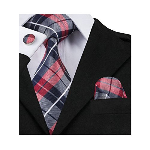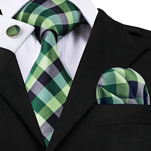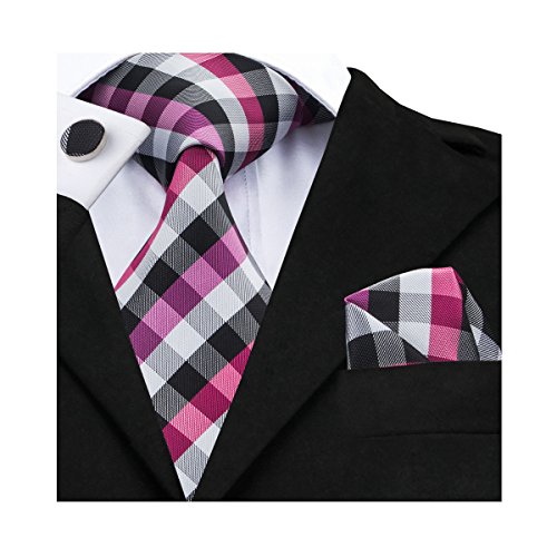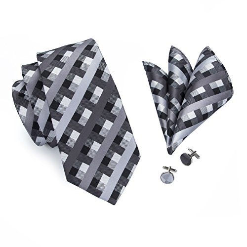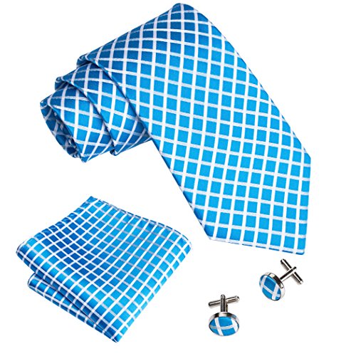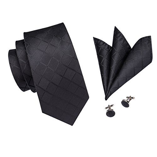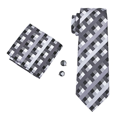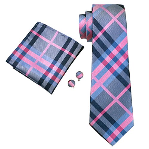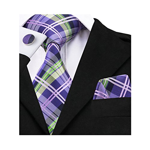 | Barry.Wang Mens Classic Plaid Necktie Set include Hanky Cufflink |