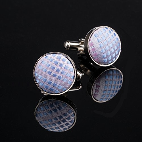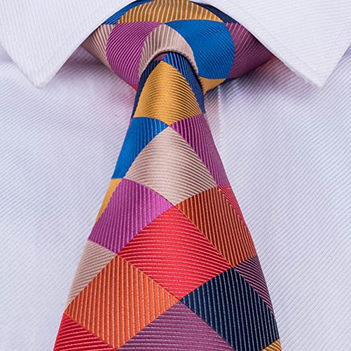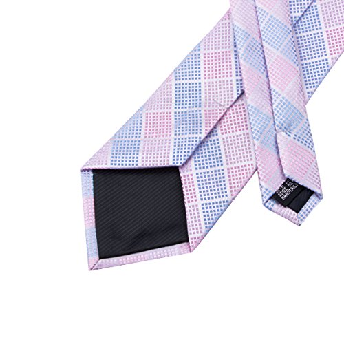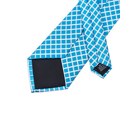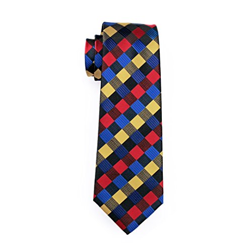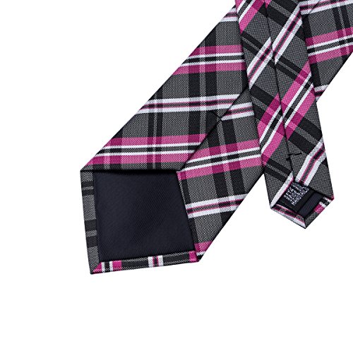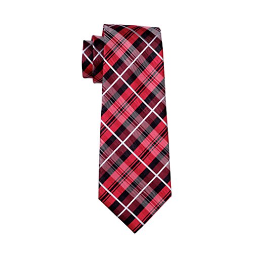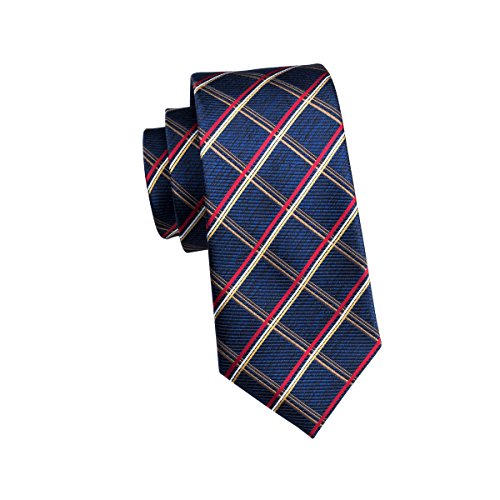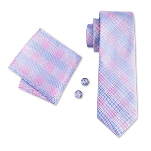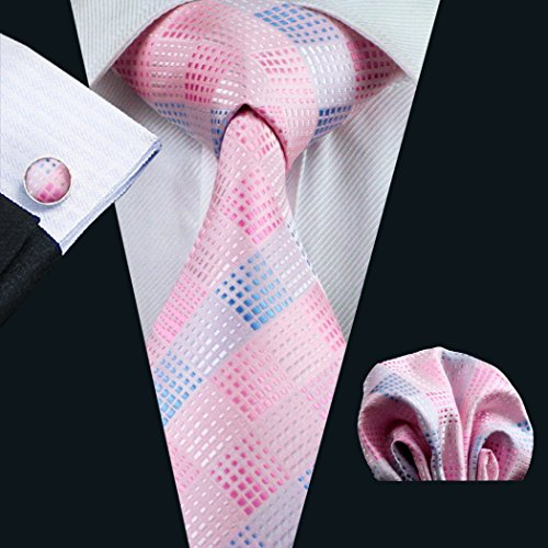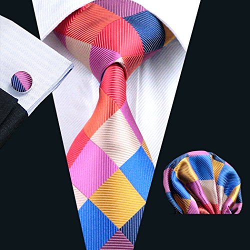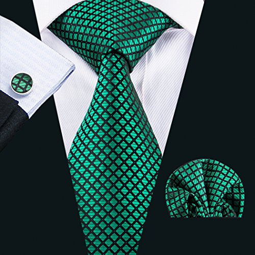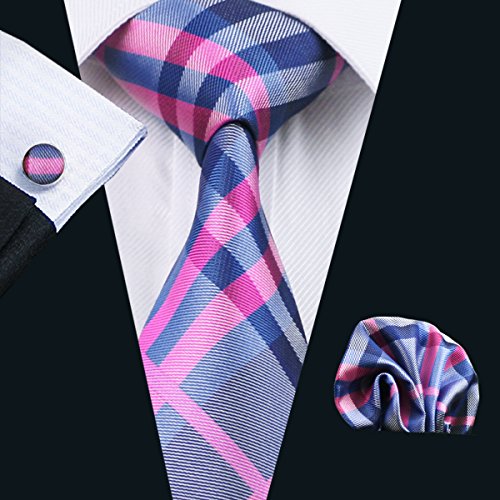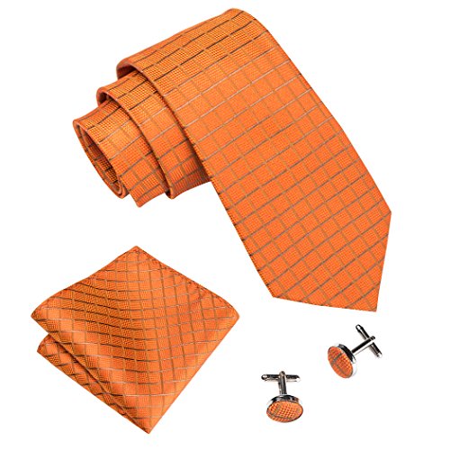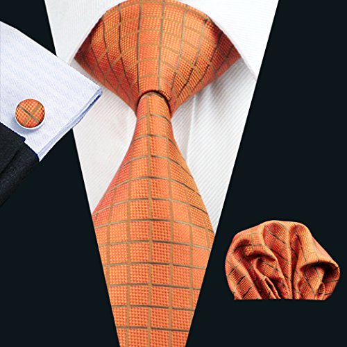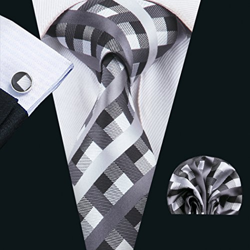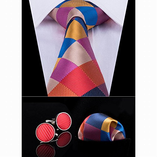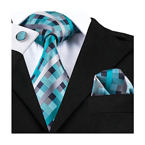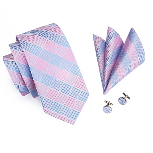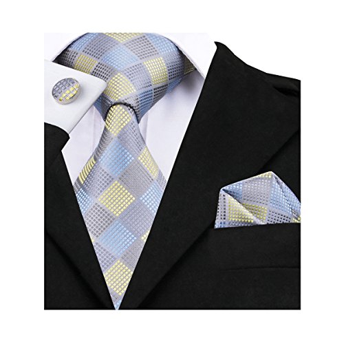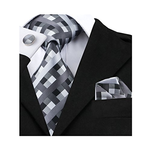 | Barry.Wang Mens Classic Plaid Necktie Set include Hanky Cufflink |
