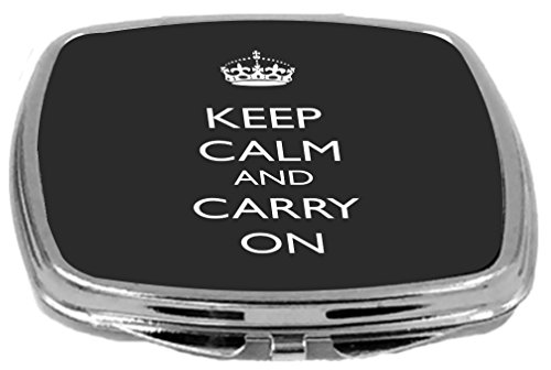 Rikki Knight Compact Mirror, Keep Calm and Carry On, Black