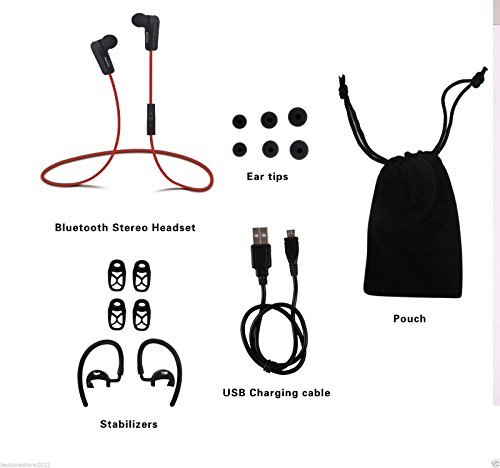 -. Title : Bluetooth Earbud, Beyution, Wireless In-ear Headphones with In-line Microphone (RED) & A2dp Technology Noise Cancellation, Stereo Bluetooth Earphones