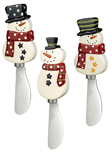 A VERY MERRY CHRISTMAS CERAMIC SET OF 3 SNOWMAN SPREADER