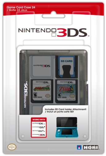 -. Binding : Video Game -. Brand : Hori -. Color : Black -. EAN : 0873124003031 -. Edition : Standard -. ESRBAgeRating : Rating Pending -. Feature : Officially licensed by Nintendo / Compact and clear design case compatible for both Nintendo 3DS and Nintendo DS game cards / Organize your games and data for your Nintendo 3DS/DSi/DS Lite with this game case / Holds up to 24 Nintendo 3DS and Nintendo DS game cards / Comes with SD card holder inside of the case -. HardwarePlatform : Nintendo 3DS -. IsAdultProduct : 0 -. IsEligibleForTradeIn : 1 -. Label : HORI -. Manufacturer : HORI -. Model : ERA93623 -. MPN : 3DS-020U -. OperatingSystem : Nintendo 3DS -. PackageQuantity : 1 -. PartNumber : 3DS-020U -. Platform : Nintendo 3DS / Nintendo DS -. ProductGroup : Video Games -. ProductTypeName : VIDEO_GAME_ACCESSORIES -. Publisher : HORI -. ReleaseDate : 2011-03-27 -. Size : One Size -. Studio : HORI -. Title : Nintendo 3DS Game Card Case 24 - Black -. UPC : 873124003031