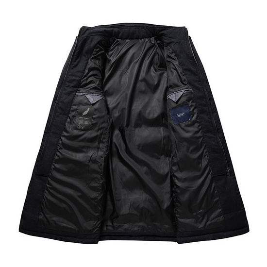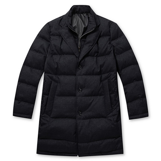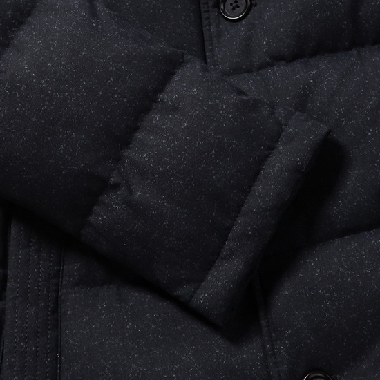 - 은은한 헤링본의 톤온톤 조직을 적용한 남성 코트.