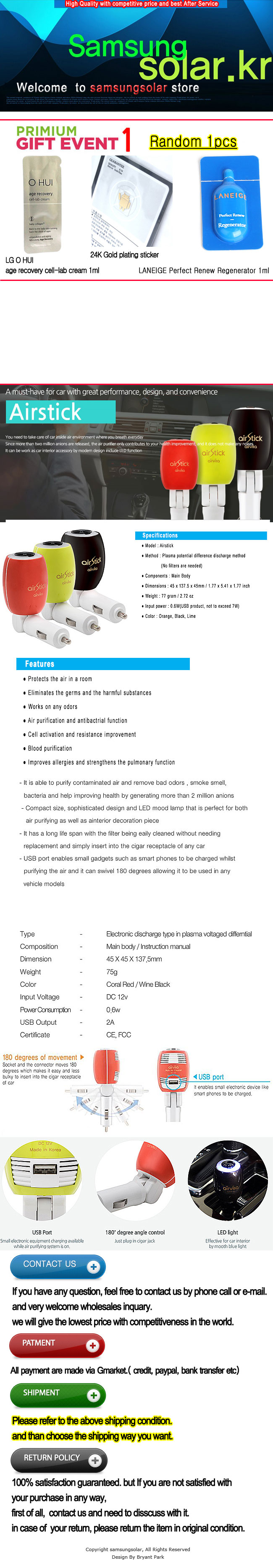 [Airvita Airstick] Car CigarJack Air Purifier USB charge 180°Adjustable Angle