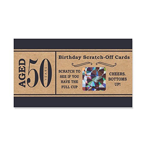 -. Feature : 50th Milestone Birthday - Dashingly Aged to Perfection - Party Game Scratch Off Cards - 22 Count / Each game has 2 "winner" cards and 20 "loser" cards / Cards measure 2.75" tall x 4.75" wide / Cards are P.R.Inted on heavy card stock with the game on the front and a pattern on the back / Made in the USA