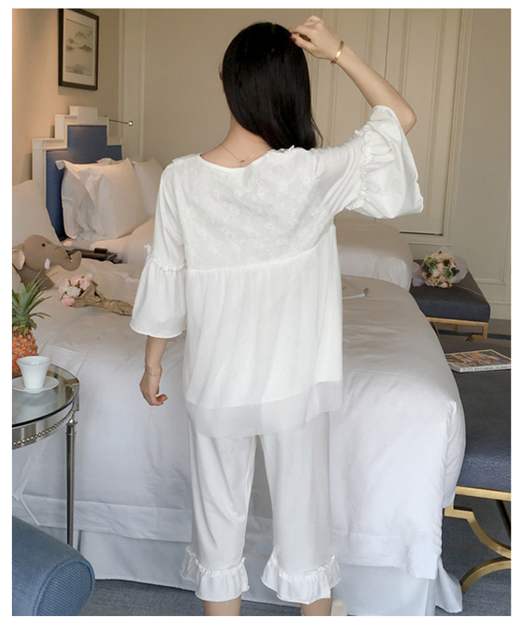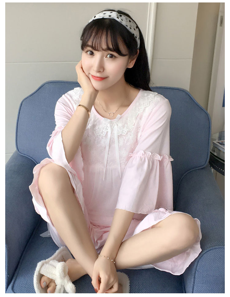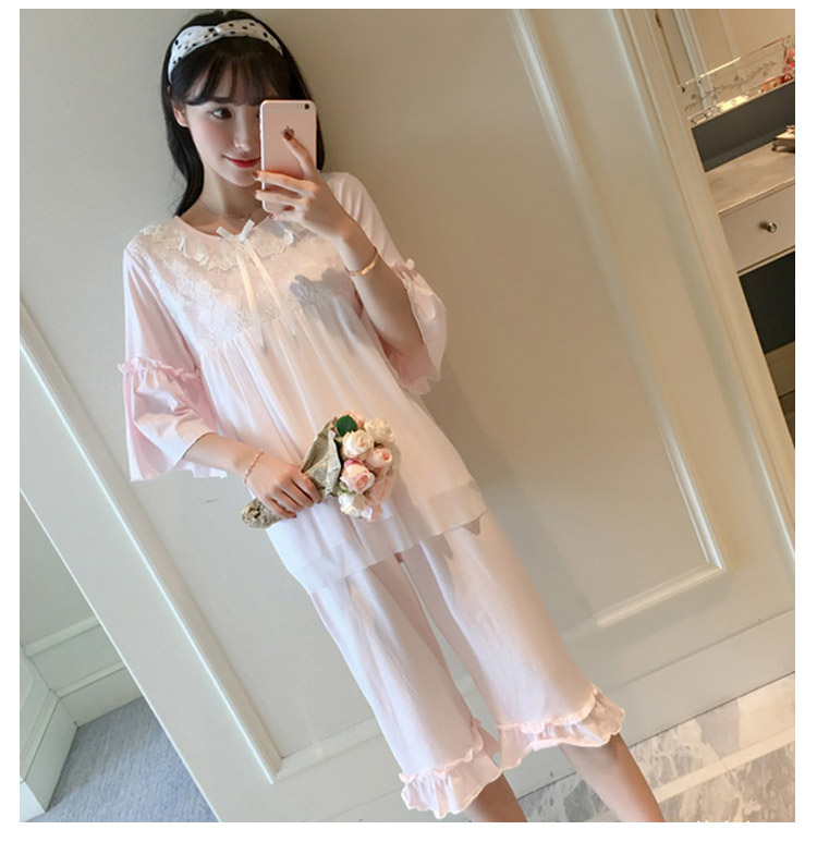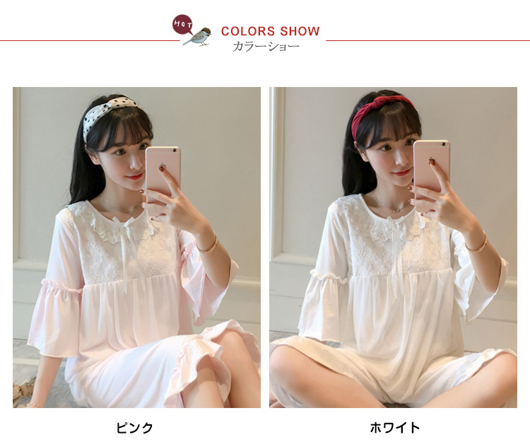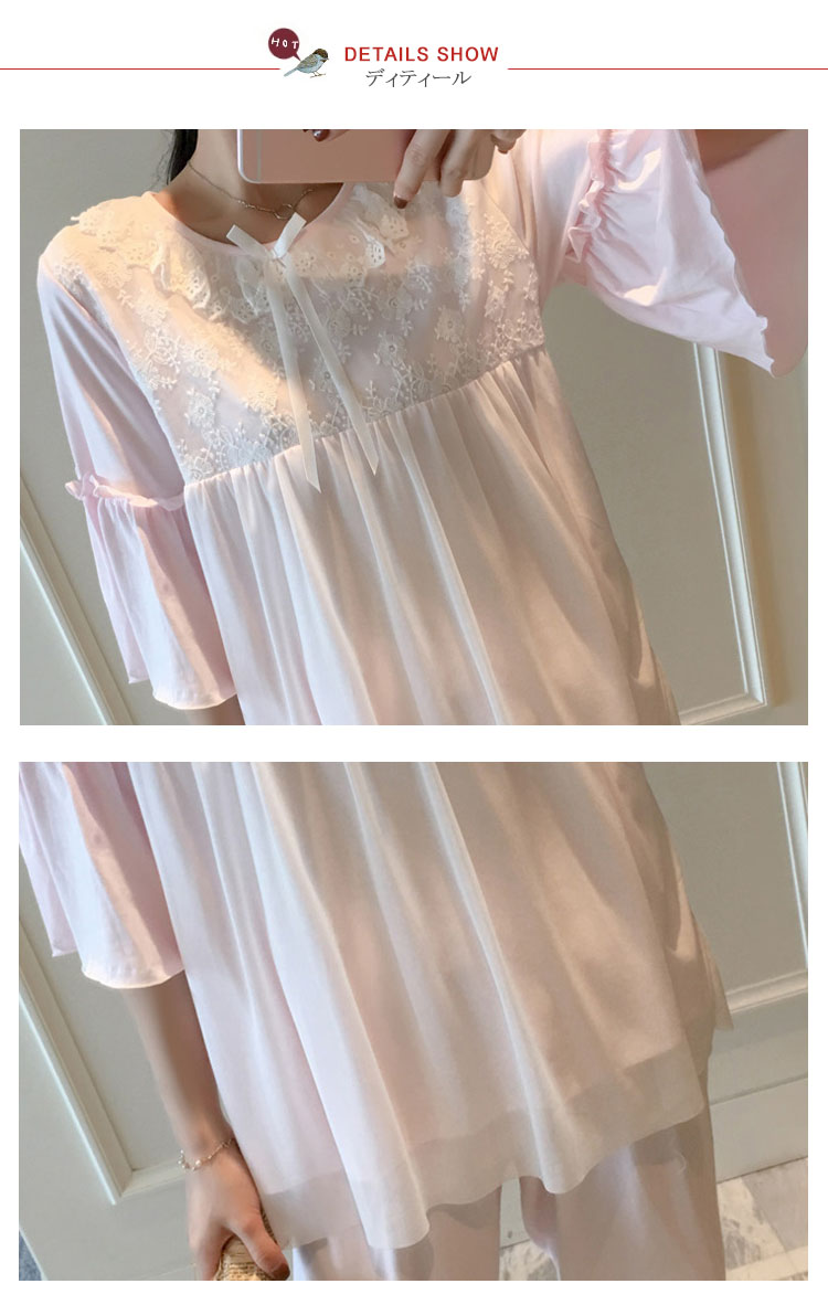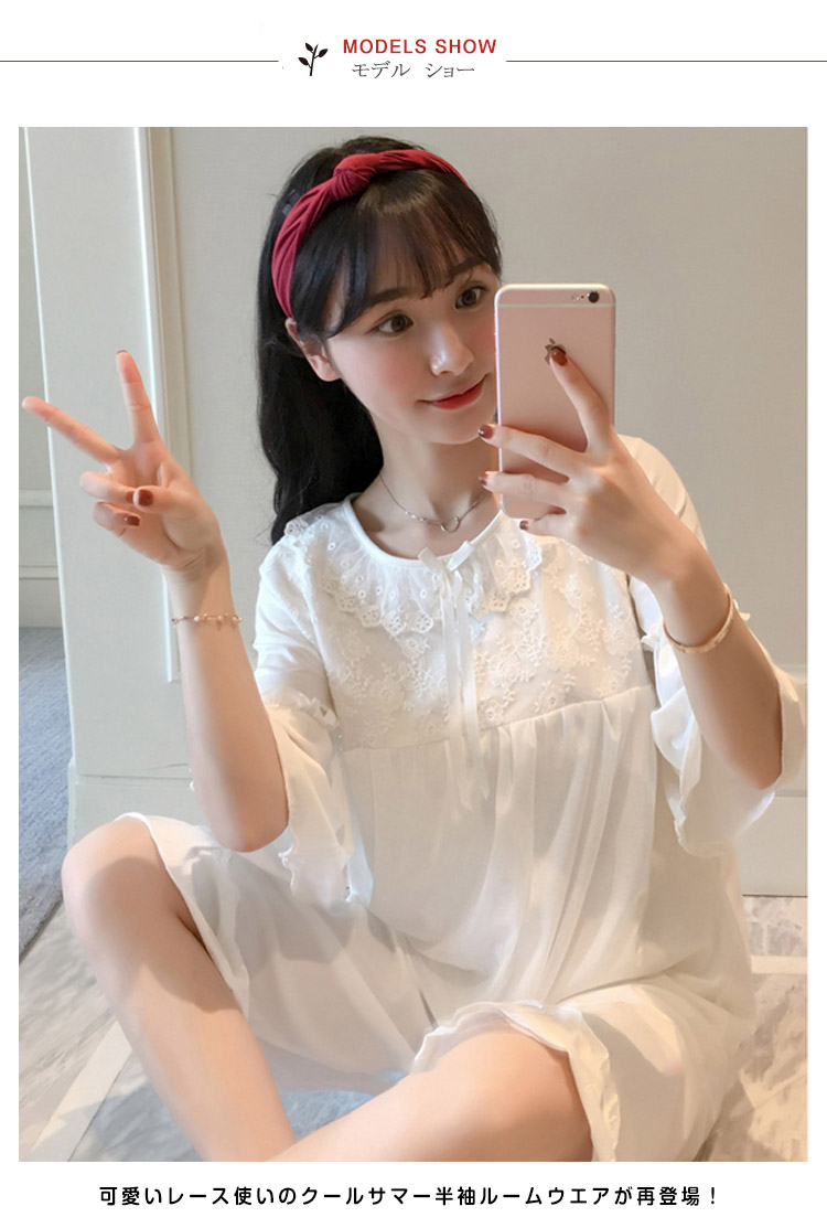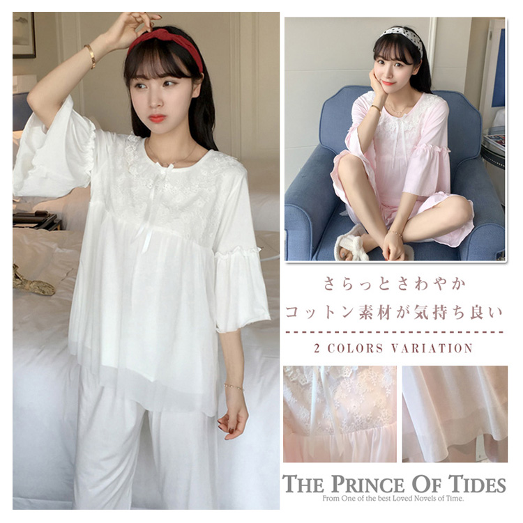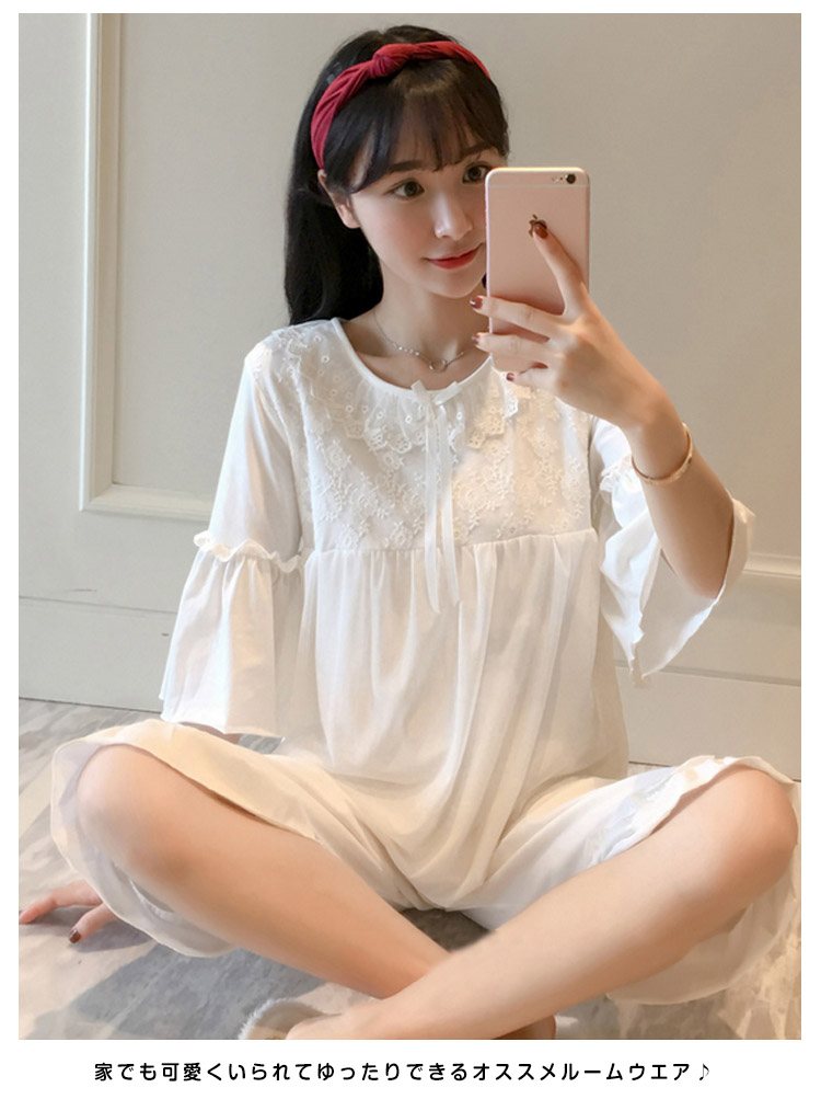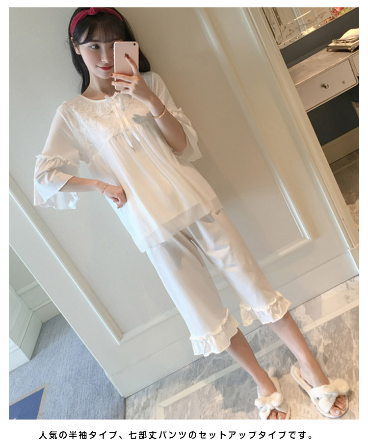 | さらっとさわやかコットン素材が気持ち良い。可愛いレース使いのクールサマー半袖ルームウエアが再登場!人気の半袖タイプ、七部丈パンツのセットアップタイプです。パンツは動きやすいウエストゴムでラクチン♪着るとわかる驚きのサラサラ感と着心地のよさ!ぜひ体感してください♪春、夏から秋までロングシーズン大活躍できる。家でも可愛くいられてゆったりできるオススメルームウエア♪ご家族やお友達、恋人へのプレゼントとしてもオススメです! | |