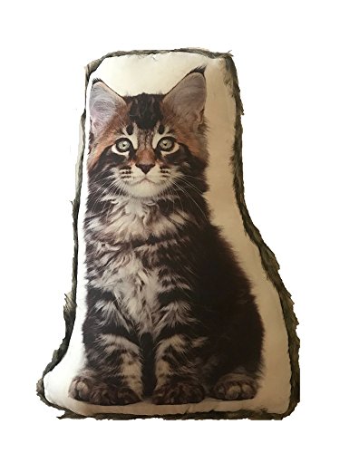 Cat Themed Accent Pillow with Fur Trim, Longhair Kitten, Approx 14" x 11".