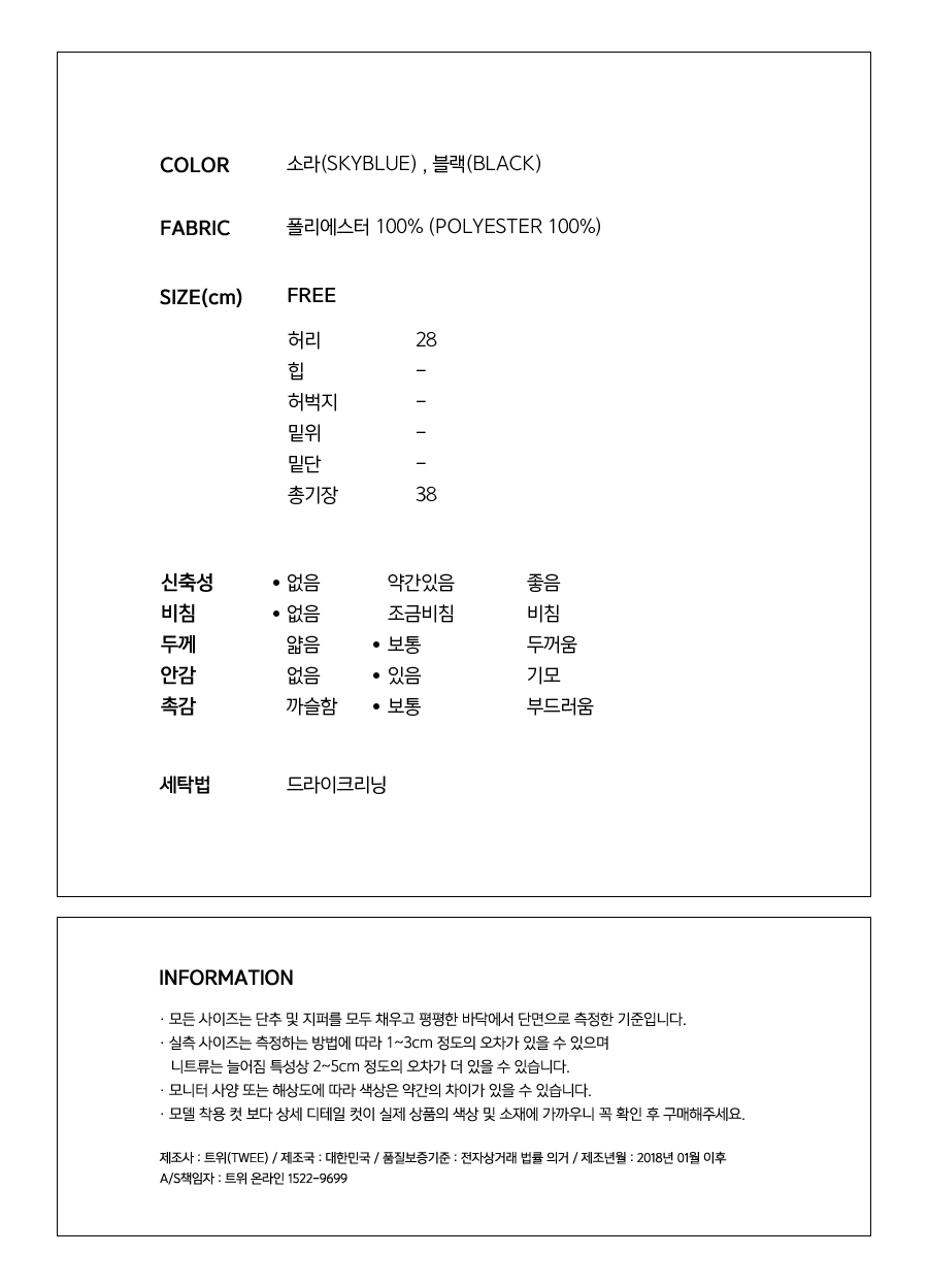 스커트 안에 속바지가 내장되어 있어 걱정없이 즐기실 수 있어요