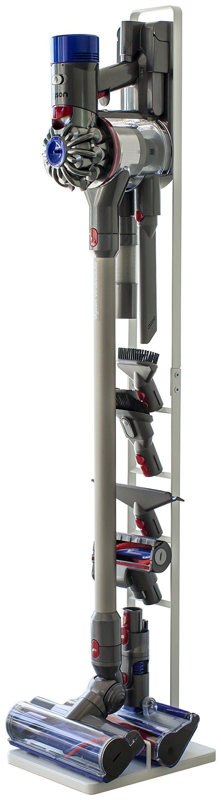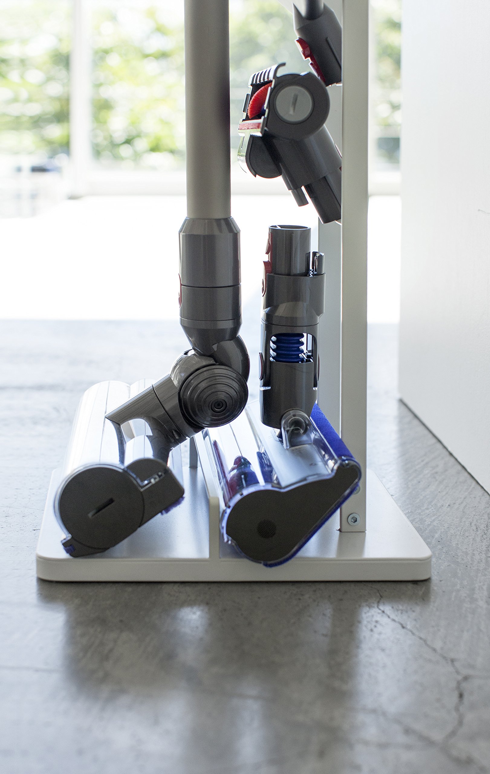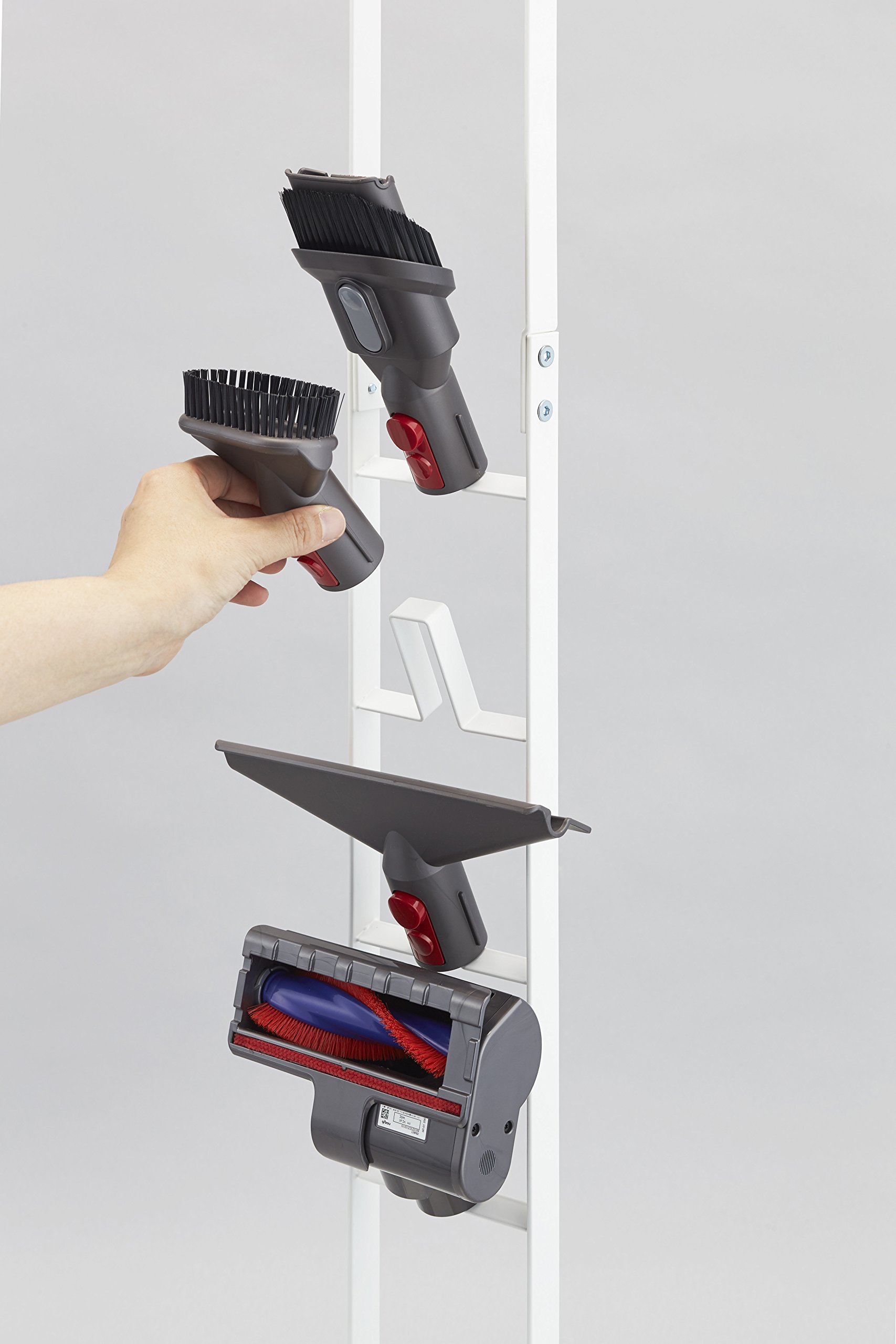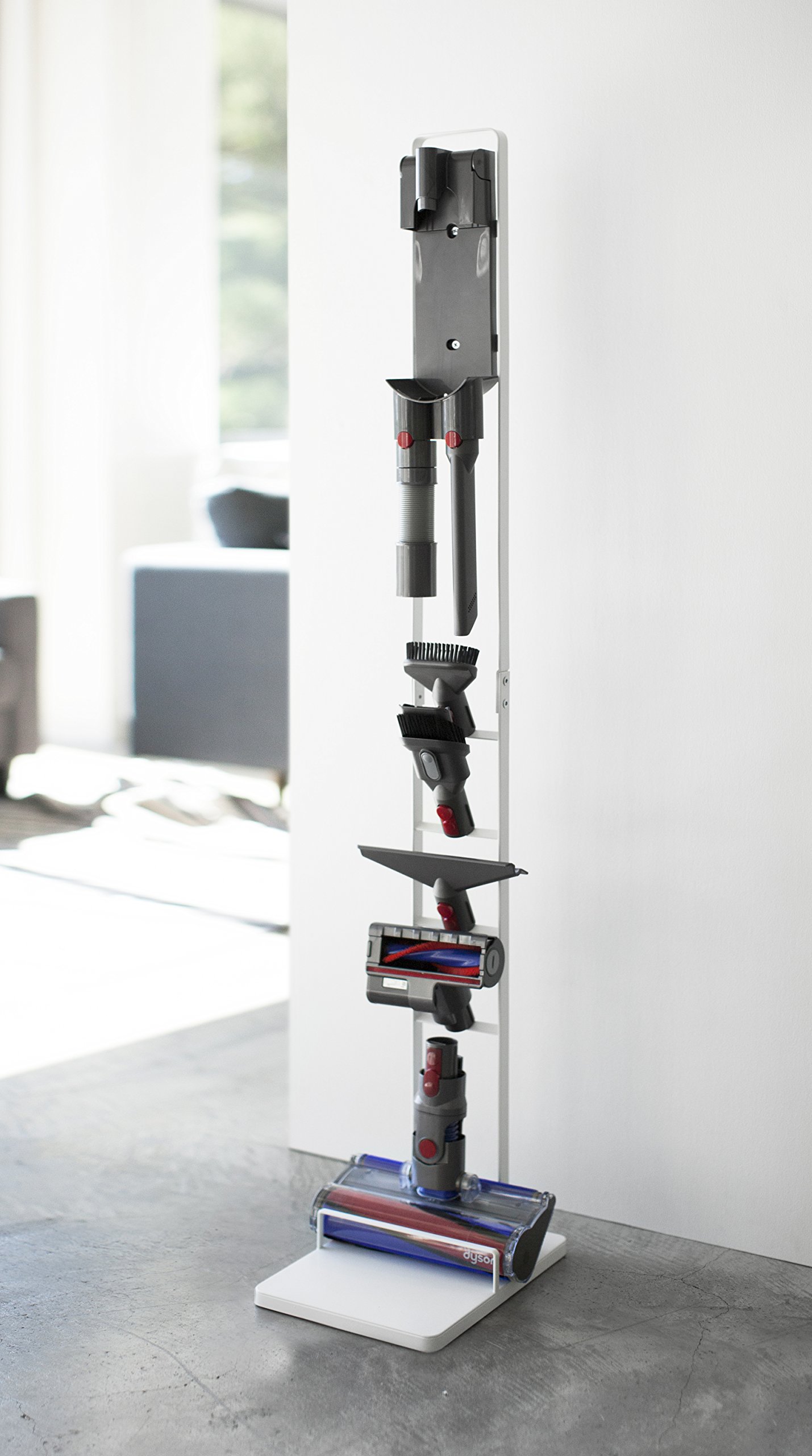 A convenient cleaner stand which can store a cordless cleaner slim without opening a hole in the wall.