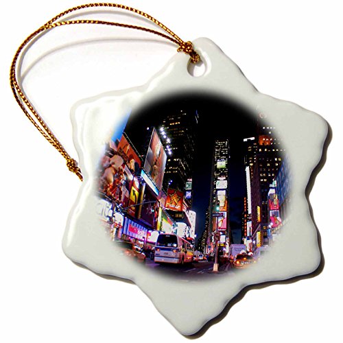 3drose New York City Times Square Snowflake Porcelain Ornament, 3-Inch