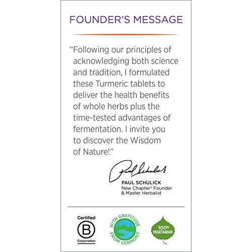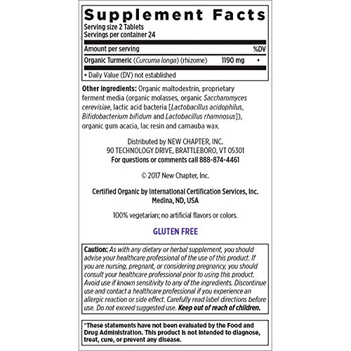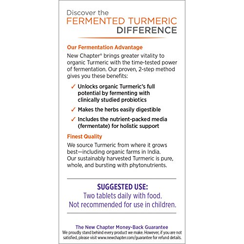 ReleaseDate : 2017-09-20 Studio : New Chapter, Inc. Publisher : New Chapter, Inc. Binding : Health and Beauty Product Description Round out your regimen with the superfood power of Turmeric. NEW Fermented Turmeric Tablets help you get the most from pure, whole-food Turmeric from India. New Chapter's premium quality, Non-GMO USDA organic Turmeric supplement supports healthy inflammation, brain health heart health. Following our principles of acknowledging both science and tradition, our Turmeric is uniquely fermented so it's easily digestible and unlocks multiple health benefits. 0