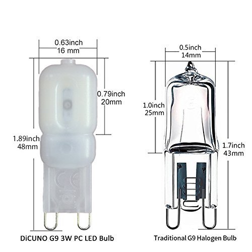 - ✔ Minimal size, slim like traditional halogens. Standard G9 bi-pin base, perfect replacement for all G9 traditional halogen bulbs. PC material with excellent heat dissipation and insulating property.