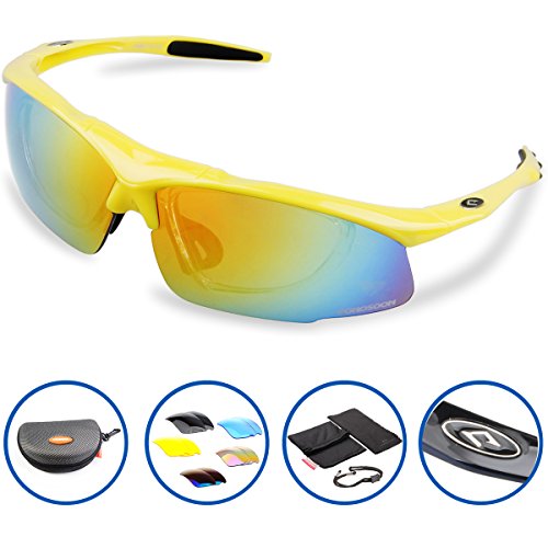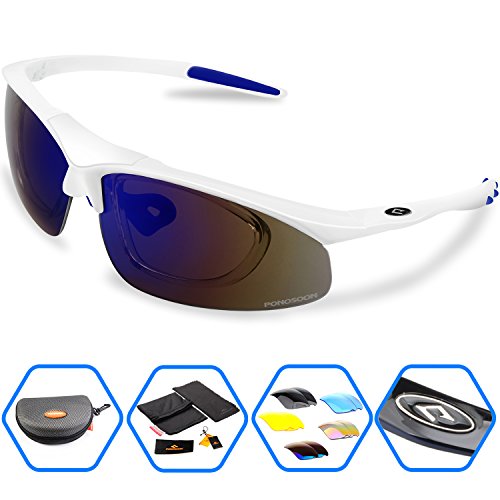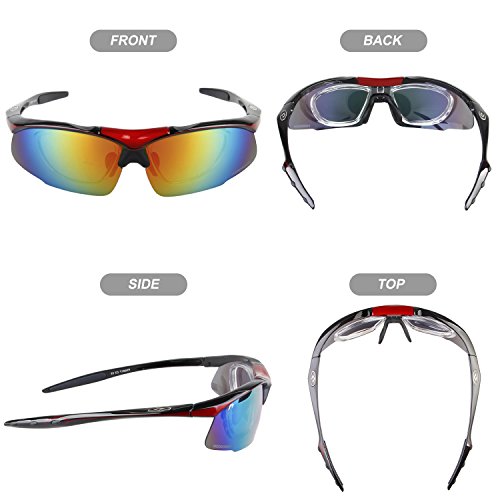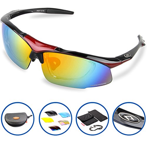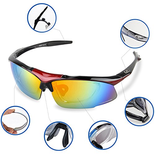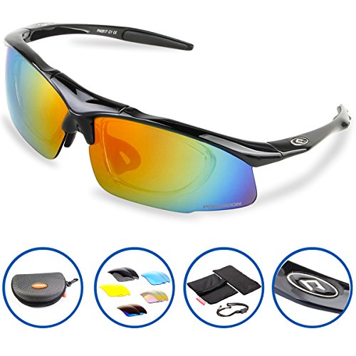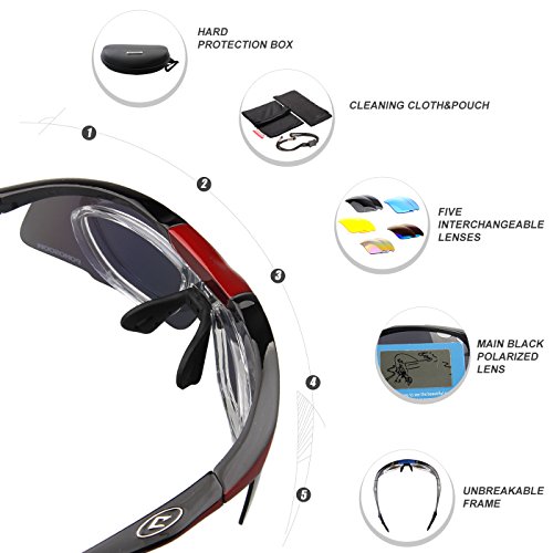 5 Shatterproof Lens:The Main Black lens is Polarized Lenses Against Strong Sunlight, the Other 4 Lens are Colored Sunglasses for Different Environmental Conditions