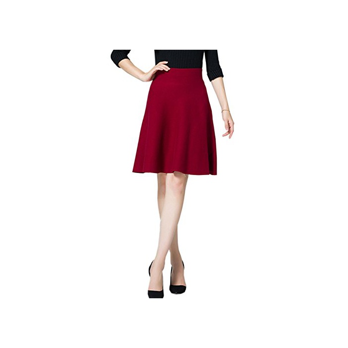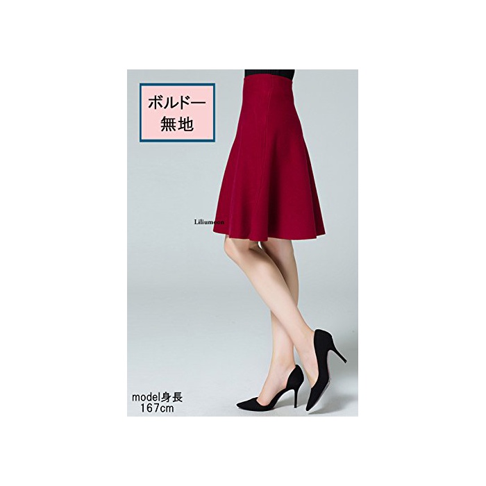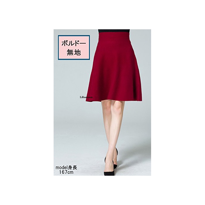 Liliumoon 니트 A라인 플레어 스커트 전14색/ 무지 케이블 tartan 격자 체크 무늬 / 미디엄 무릎 키 레이디스 패션 (보르도 무지)