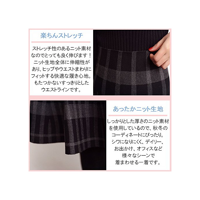 원본상품명: Liliumoon ニット Aライン ひざ丈 フレア スカト 【ストレッチ素材】(全14色) 無地 タタン ギンガム チェック 格子 ケブル編み 柄 / ミディアム 膝丈 秋 冬 レディス フ