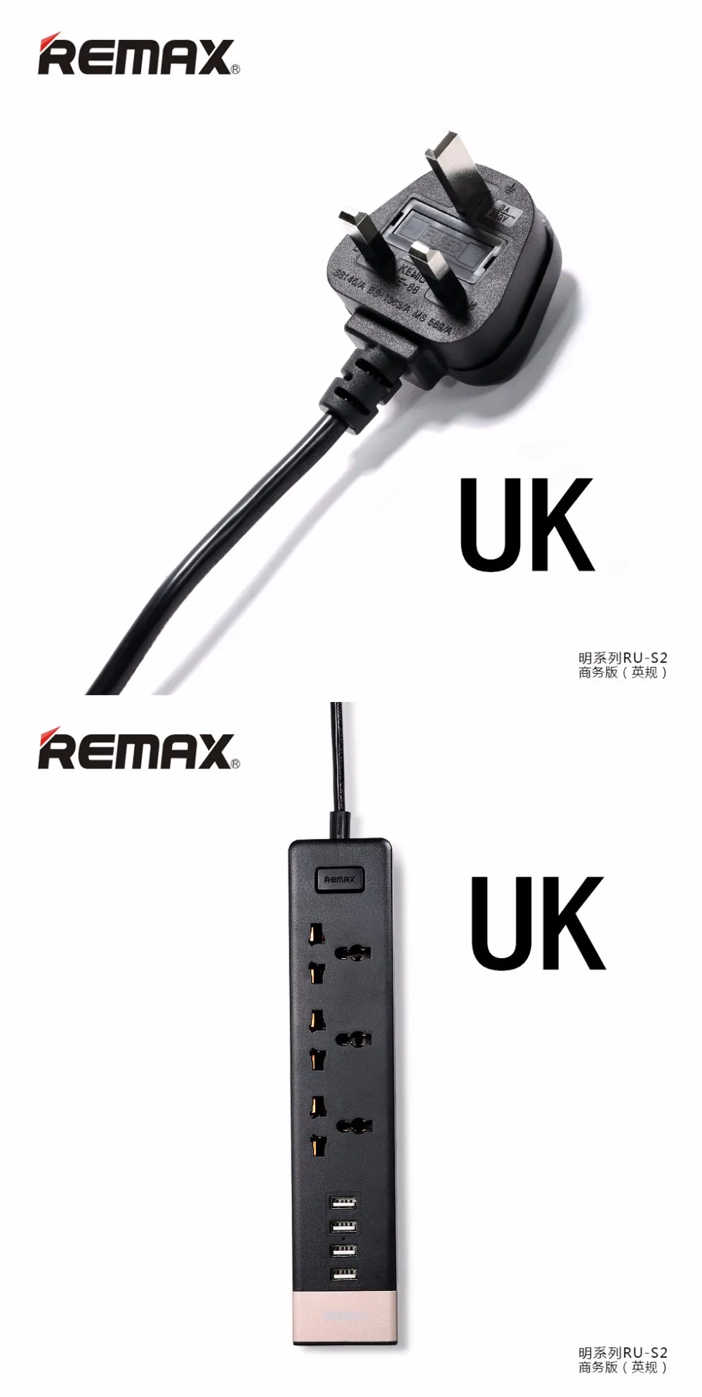 Remax RU-S2 Ming USB Power Outlet Strip Socket Adapter EU/US/CN/UK Plug 4USB Ports 3 Jacks 2.1A 2500W with Retail Package