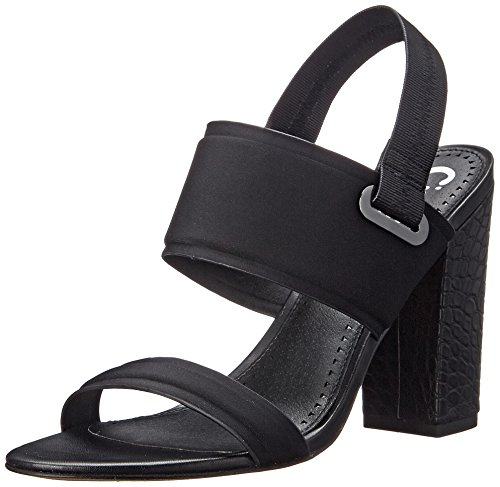 Slip on wear with elastic slingback strap. Padded strap across vamp. Open toe. Man-made lining and footbed. Covered block heel. Man-made outsole. Imported.Feature