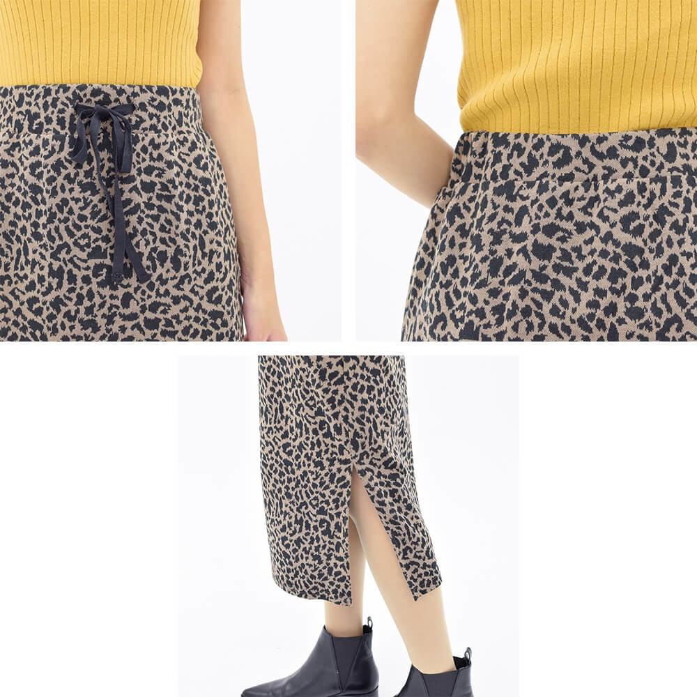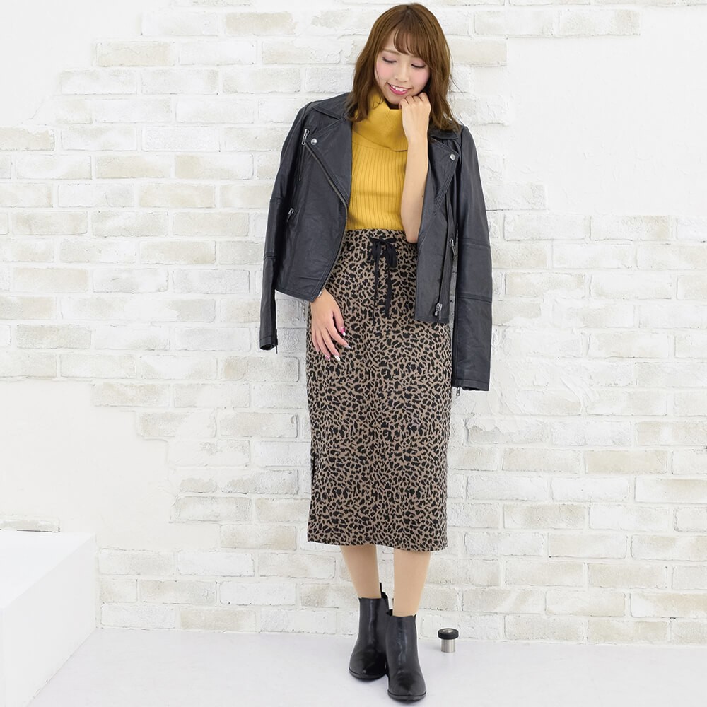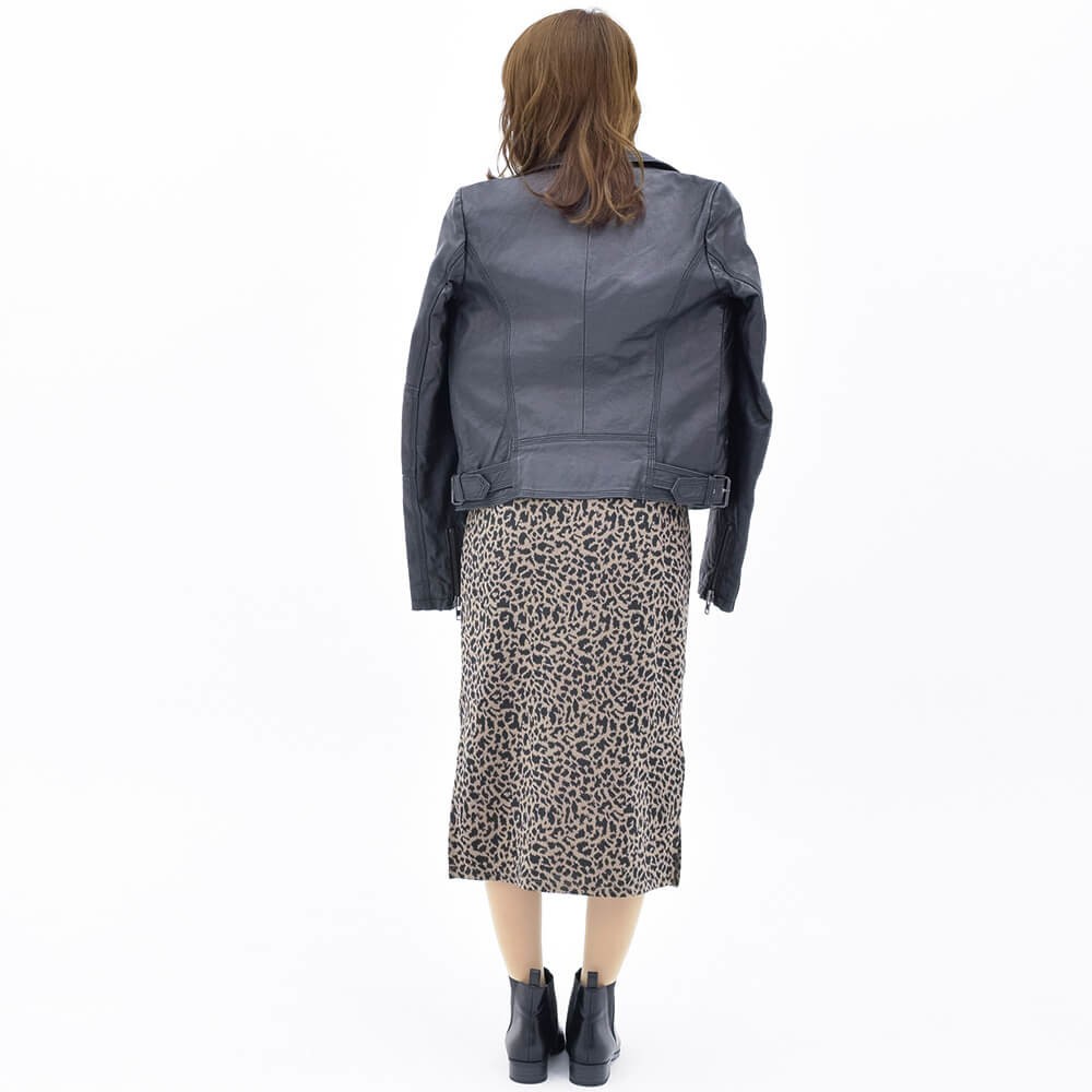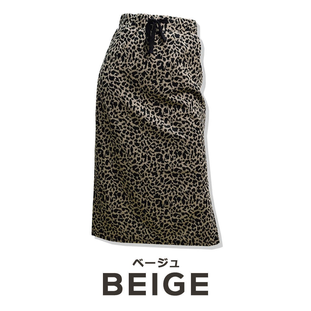 ヒョウ柄でも落ち着きのあるパターン、配色がポイントのタイトスカート。
