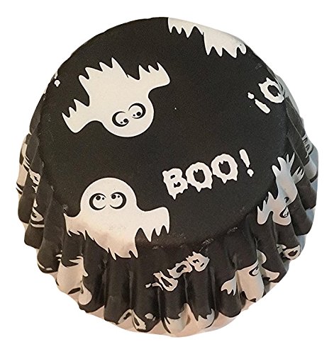 Halloween Entertaining; Cupcakes, Muffins; Disposable Cupcake Baking Cups, 24-pack (Black and White, Ghosts)