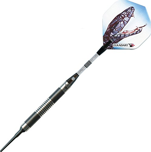 The Elkadart Black Mamba soft tip darts are designed with high quality 80/20 tungsten barrels, allowing you to attain a tighter grouping of shots. Strategically placed knurling and grooves provide excellent gripping points, enhancing your control. Each dart features a diamond cut aluminum shaft equipped with a locking hole which enables you to further tighten the connection to improve stability. The flights are specifically designed to help increase speed and reduce drag, delivering a consistent flight path and pinpoint accuracy. They feature 2BA Tufflex Tips II soft tip dart points that have a reinforced cone, making them extremely strong and durable. Simply twist for a tight, secure fitting and easy removal. Barrels are compatible with all 2BA size dart corkscrew threads. Includes 1 slim dart case which allows you to protect and safely transport your darts. Made in England.