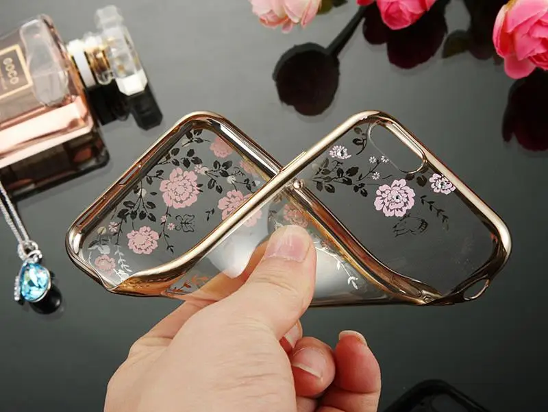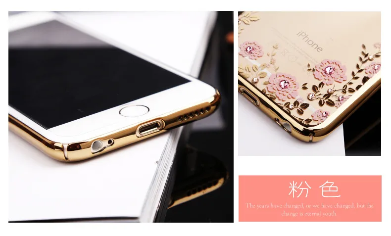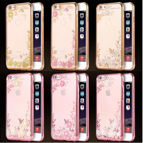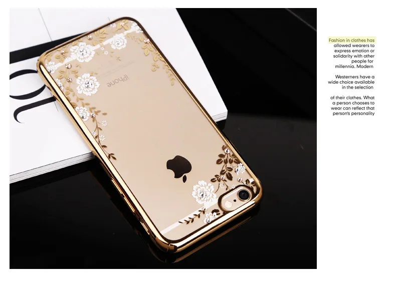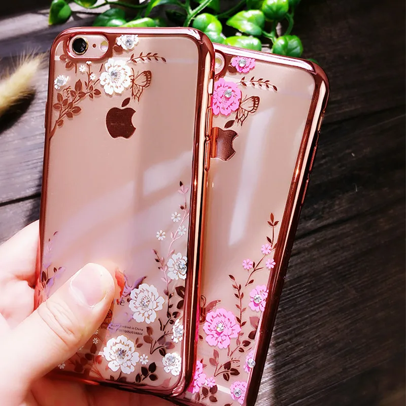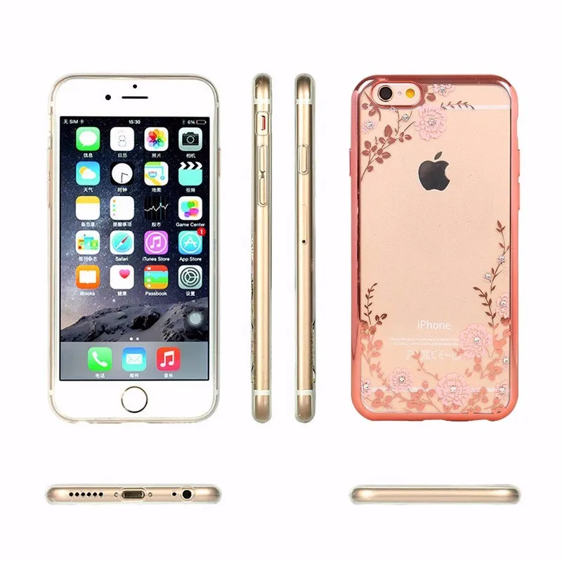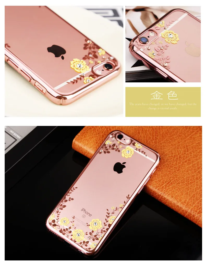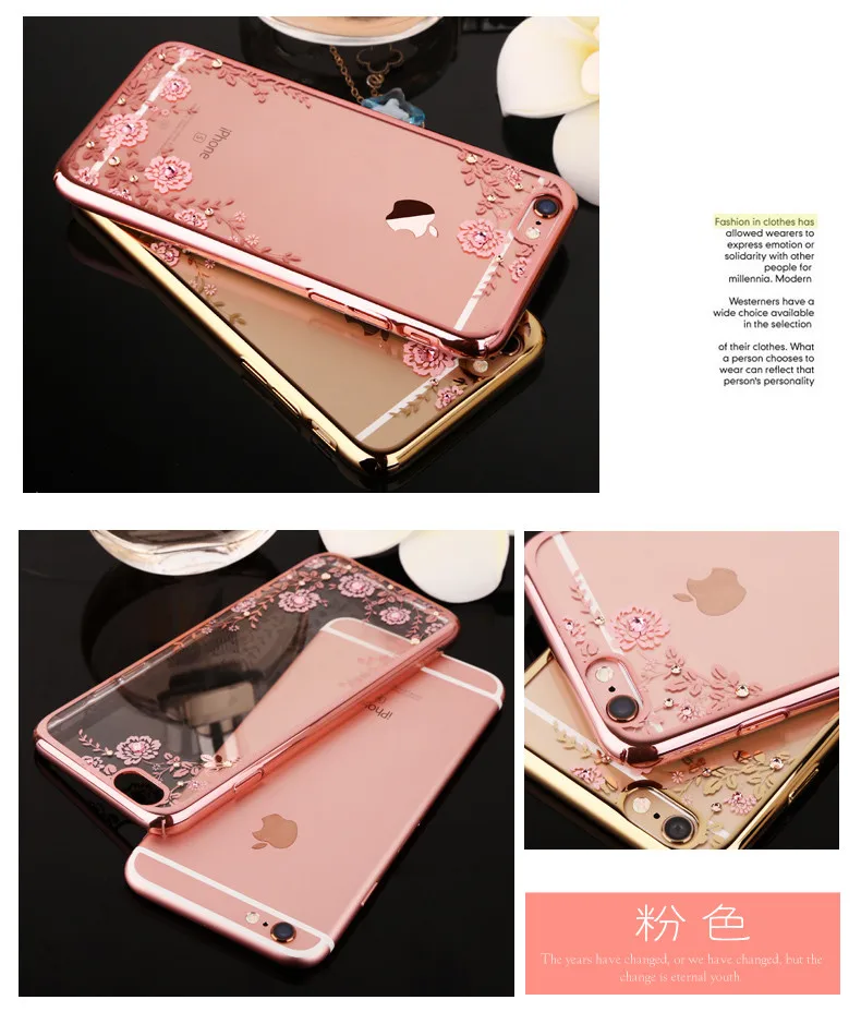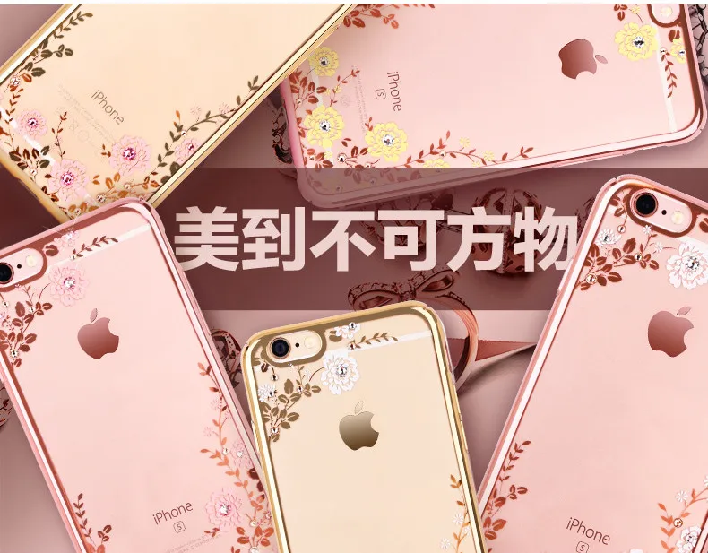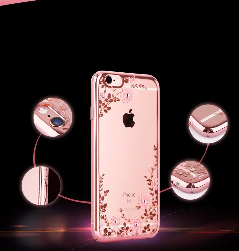 feature two:for iphone 7 case Luxury Floral Rhinestone Soft TPU Case