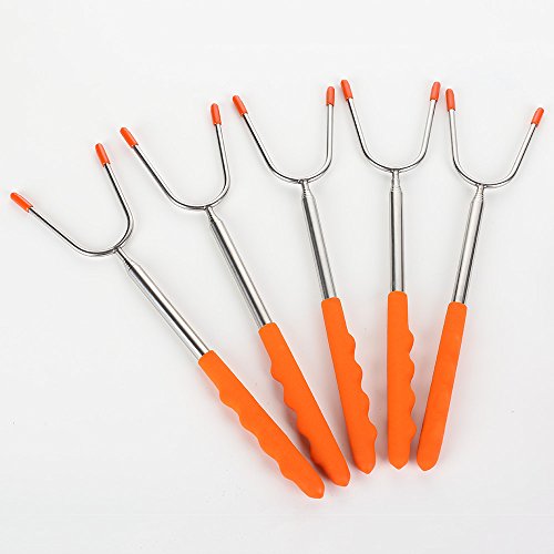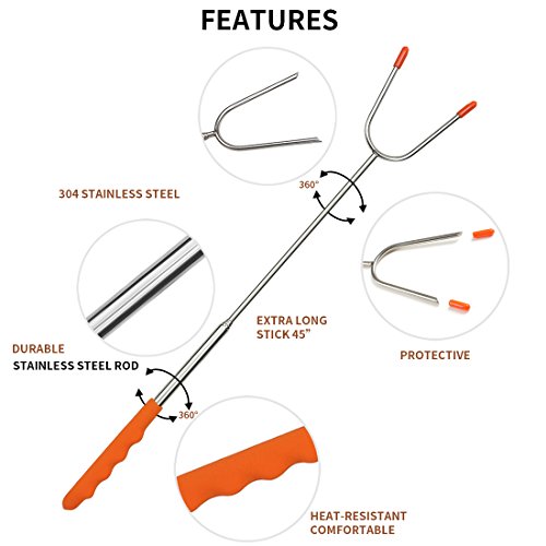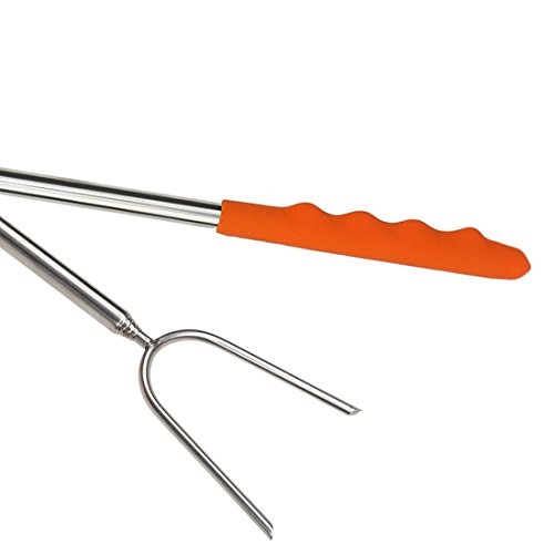 ♥Safe Design for Human: 45 Inch Extra-Long Extendable Telescoping Forks and it Can Adjust the Length According to Your Need, Keep You and Rour Kids at a Safe Distance From the Fire Pit, The Prongs' Sharp Tips are Protected with Rubber.