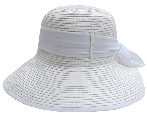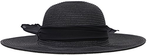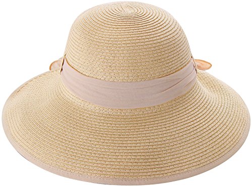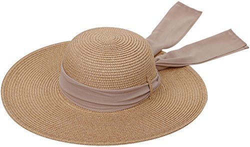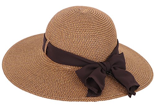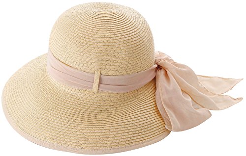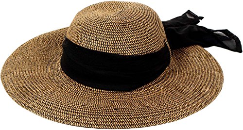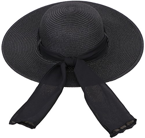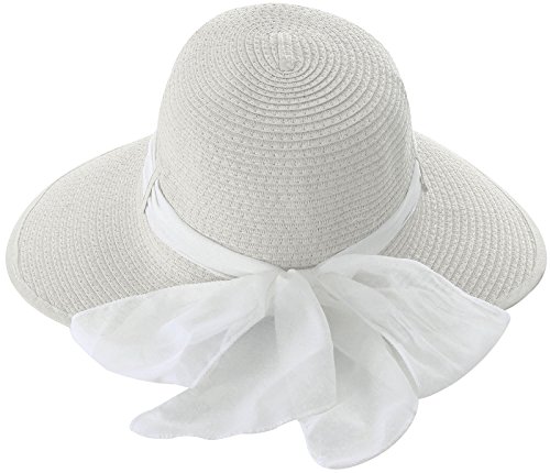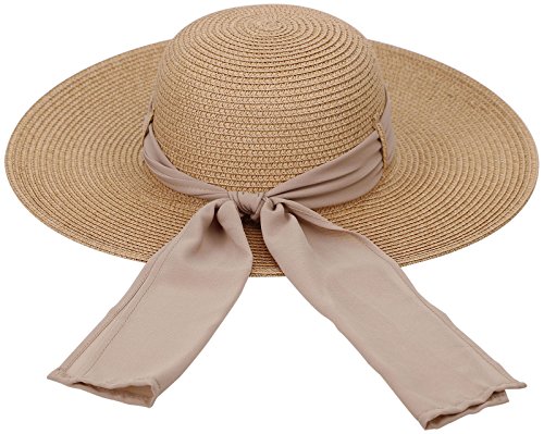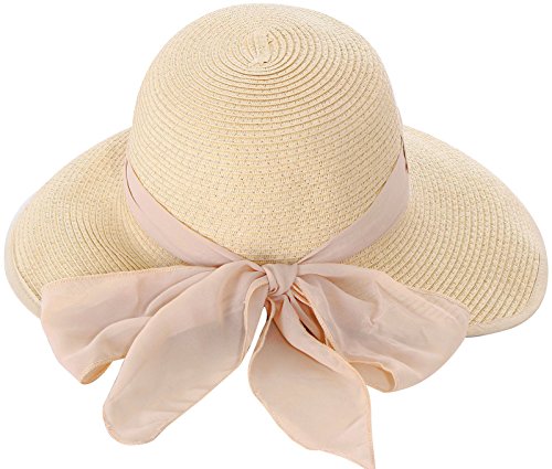 TAUT Women Summer Beach Straw Hat Sun Cap w/ Chiffon Band