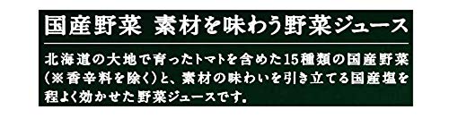 原材料:トマトジュース(濃縮トマト還元)、野菜ジュース(にんじん(濃縮還元)、セルリー、レタス(濃縮還元)、ビーツ、ほうれん草、よもぎ(濃縮還元)、チンゲンサイ(濃縮還元)、小松菜、ケール、大根(濃縮還元)、たまねぎ(濃縮還元)、パセリ(濃縮還元)、クレソン、ラディッシュ)、食塩、香辛料