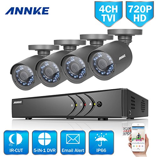 -. Title : ANNKE 4CH 720P CCTV DVR Recorder and (4) HD 1280TVL 1.0Mega-Pixels Surveillance Camera System with Superior Night Vision, IP66 Weatherproof Housing, No HDD