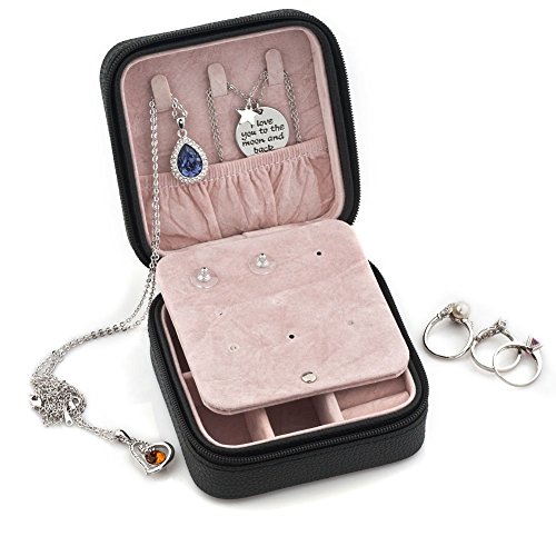 LuckyJewelry Small Faux Leather Travel Jewelry Box Organizer Display Lockable Makeup Storage Case for Women (Black)