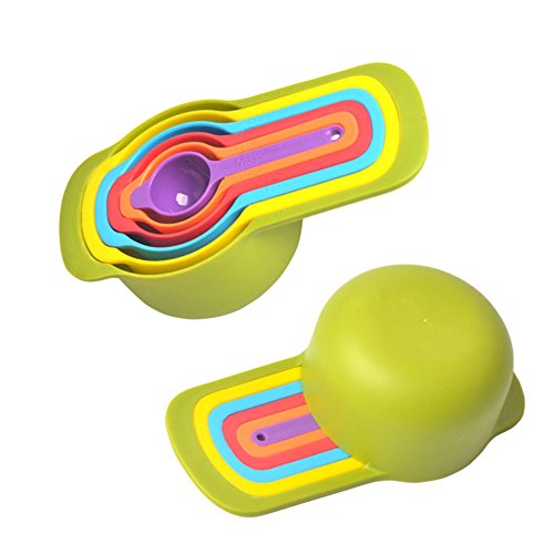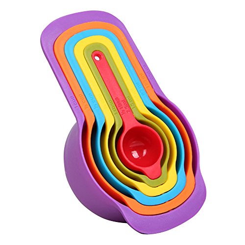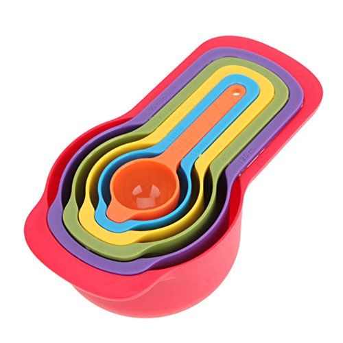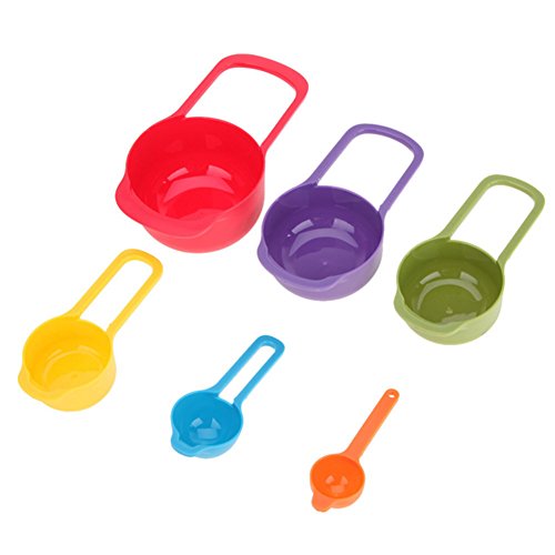 Mary Paxton12 6Pcs Colorful Plastic Measuring Spoons and Cups Set Kitchen Stackable Liquid Measuring Gadget Utensils BPA Free,Random Colors