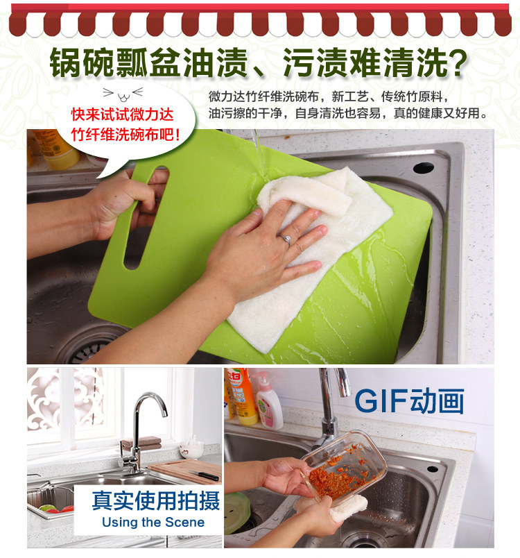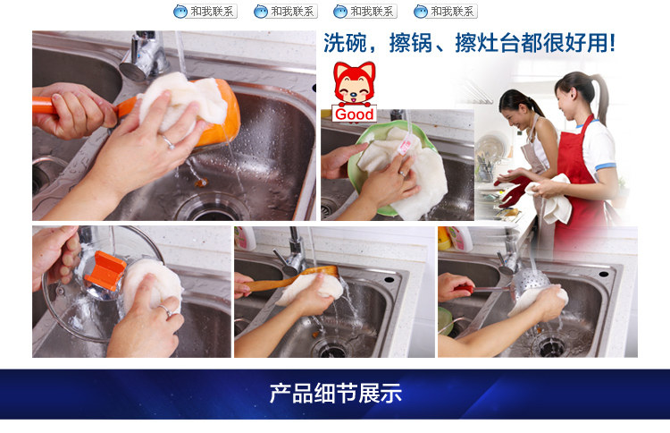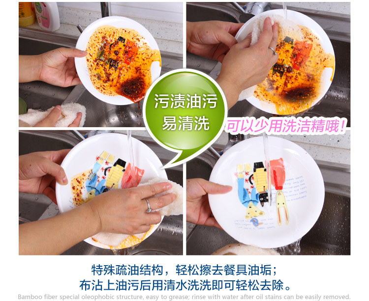 抹布洗碗布竹纤维 百洁布不掉毛3包组合套装