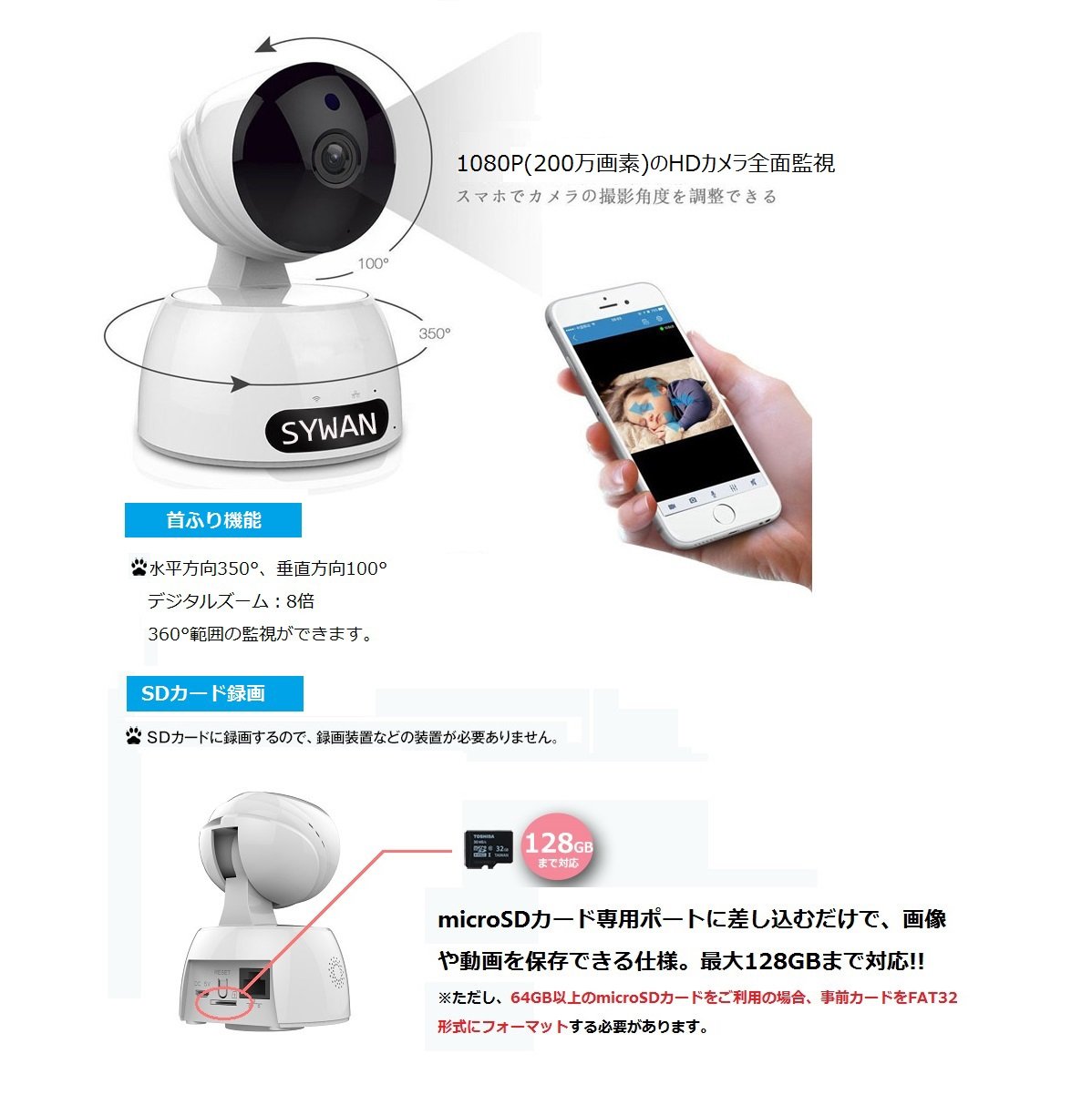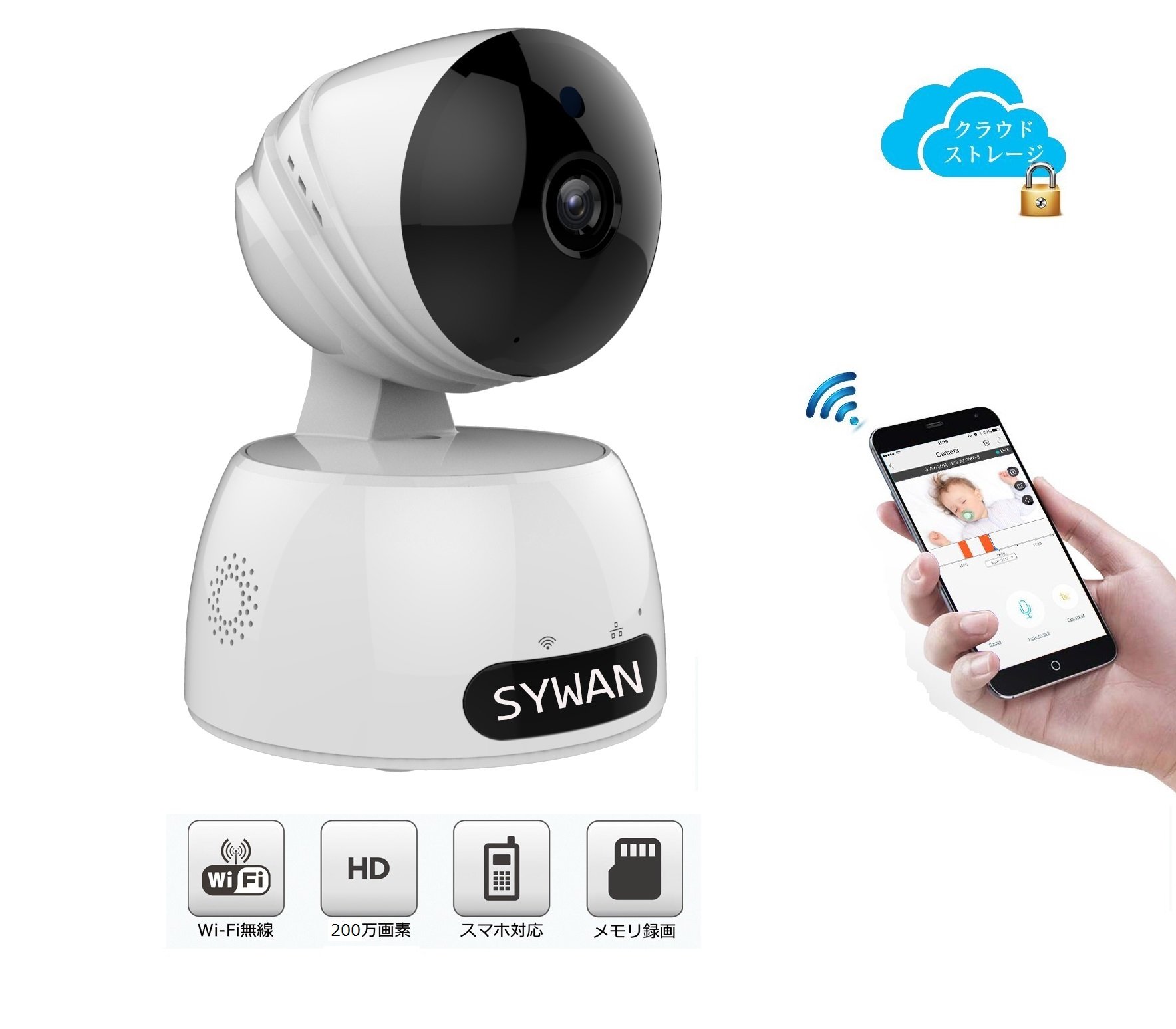 A surveillance camera equipped with a high-performance CMOS sensor with effective 1 million pixels is compatible with both wired network and wireless LAN, and you can easily download it by downloading "VsmaHome" application for free Android / iPhone.