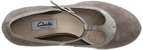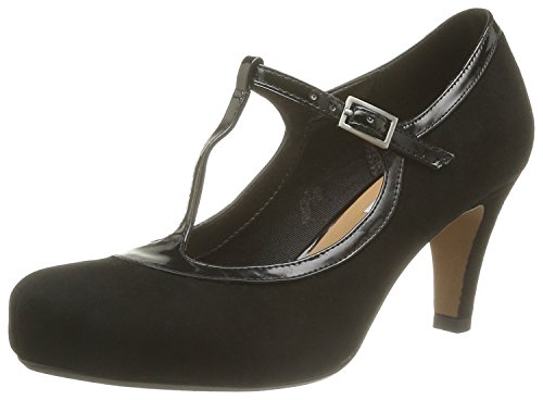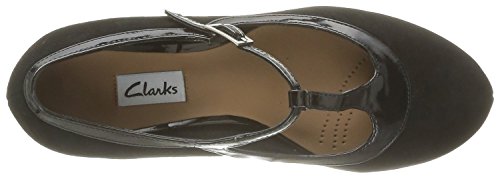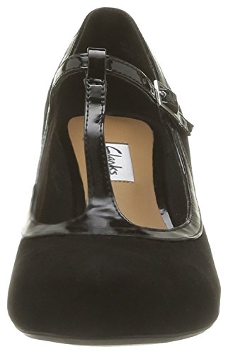 Binding : Apparel Product Description Clarks Chorus Thrill Shoes Channelling a vintage look, Chorus Thrill women's shoes fasten with a T-bar strap and mix soft navy blue suede with a glossy leather trim. A contemporary concealed platform and 65mm heel add wearable height that carries you through the day into the evening. 0
