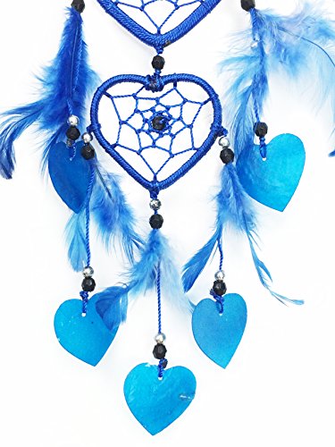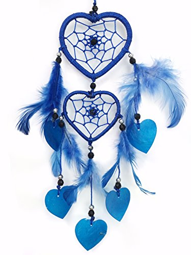 PEPPERLONELY Dream Catcher Heart Shape Dark Blue Feathers 2.5x2 Inch Heart, 12 Inch Long