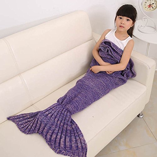 Feature : Orlon 70% Cotton 30% / Super Multi-function for all seasons: Sleeping blanket keeps your kids warm in winter, spring and autumn; in summer, it also can keep warm in air conditioning house. / Adorable blanket tail just like a sleeping bag to climb in, wide openings and open fins / Ideal Gift:Make your little girls' mermaid dream come true. It is good choice as children's Birthday, Christmas gift. Use this blanket at sleepovers, in bed, on the couch, in the car, camping, dream of being a mermaid anywhere / With beautiful cable knitted pattern to complement your living room or bedroom decor