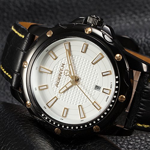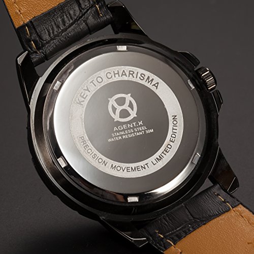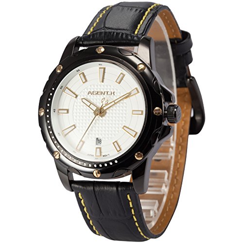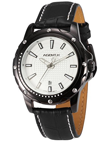 -. Title : [エージェント エックス]Agent X メンズ アナログ 日本製クォーツ 日付表示 レザー バンド 腕時計