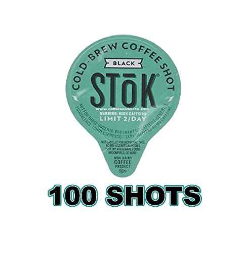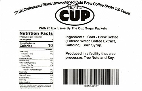 SToK Caffeinated Black Unsweetened Cold Brew Coffee Shots 100 Count - With 20 Exclusive By The Cup Sugar Packets