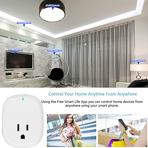Secure protection Have the Smart Plug work for you when you're out of home, away-model will auto- trun on/off to give the appearance that y someone is home.
